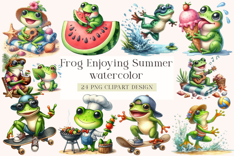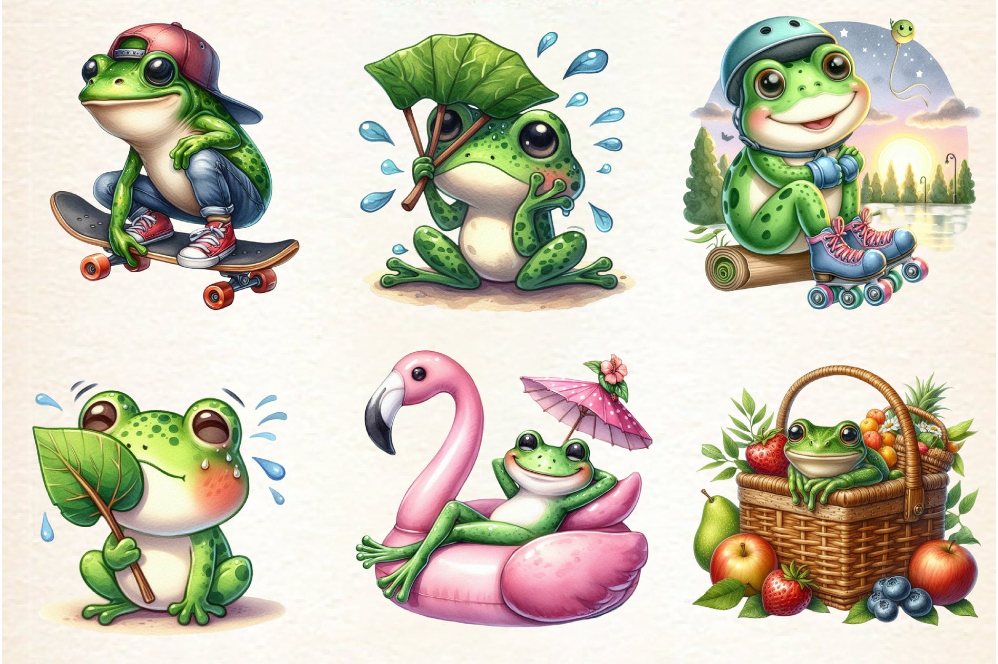 Hop into creativity with our Frog Summer Clipart Bundle, featuring charming frog designs perfect for vibrant seasonal projects. Ideal for scrapbooking, invitations, and more, these delightful illustrations bring a splash of fun to any craft.