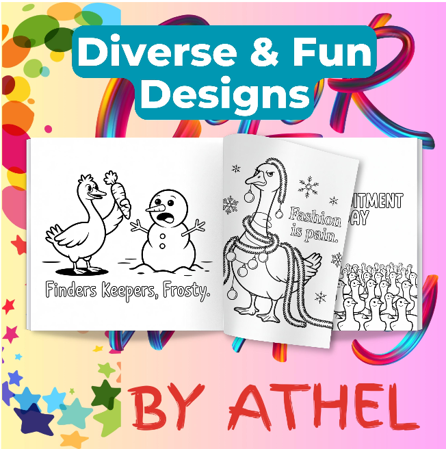 Delight in the whimsical charm of our Funny Christmas Goose Coloring Book Bundle, perfect for holiday fun and creativity. Featuring a collection of hilarious goose designs, this bundle is ideal for festive family activities and unique Christmas crafts. Unleash your imagination with these amusing illustrations, perfect for all ages. Make your holiday season memorable with this entertaining and engaging coloring book set, designed to bring joy and laughter to your celebrations.