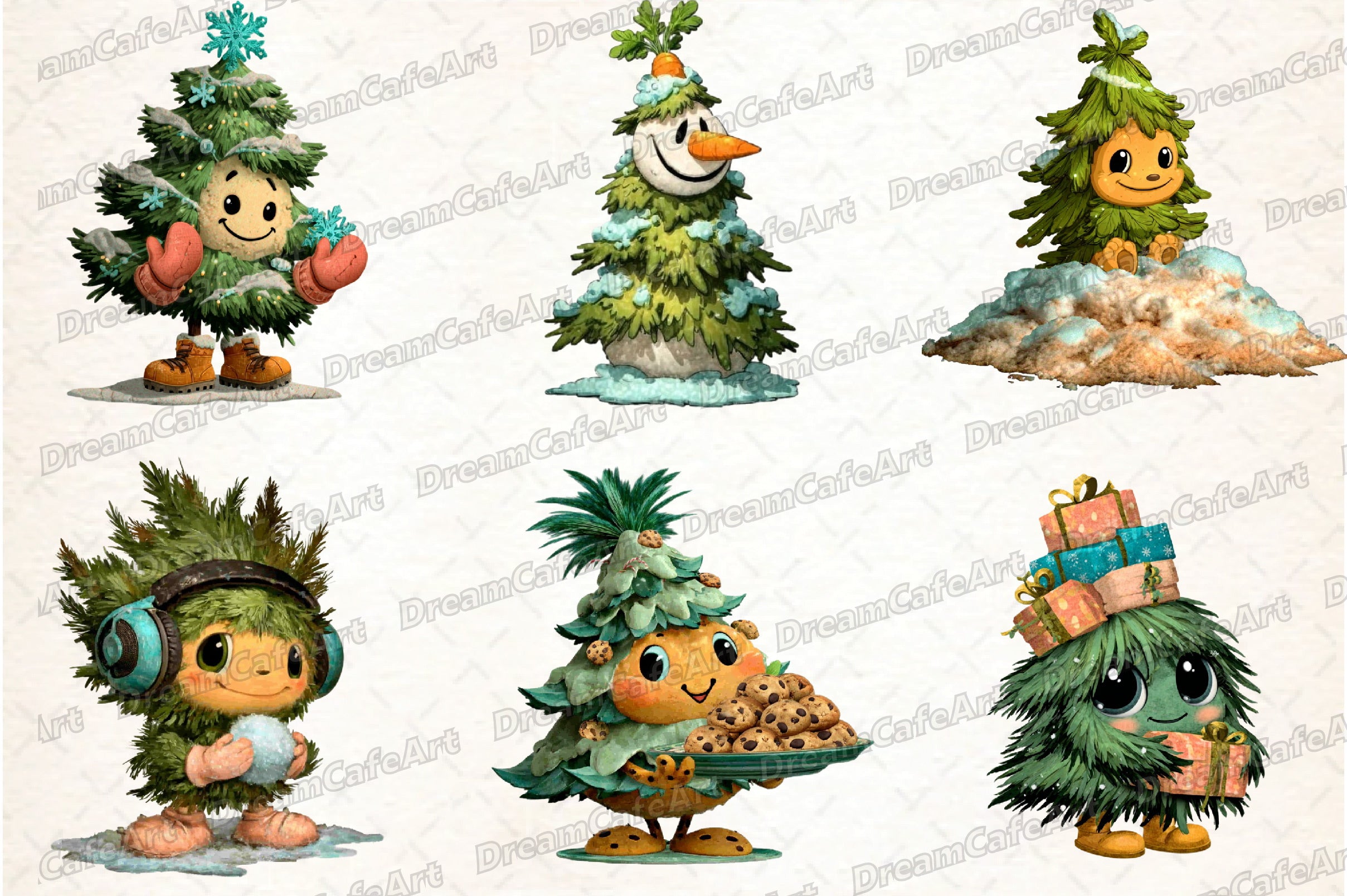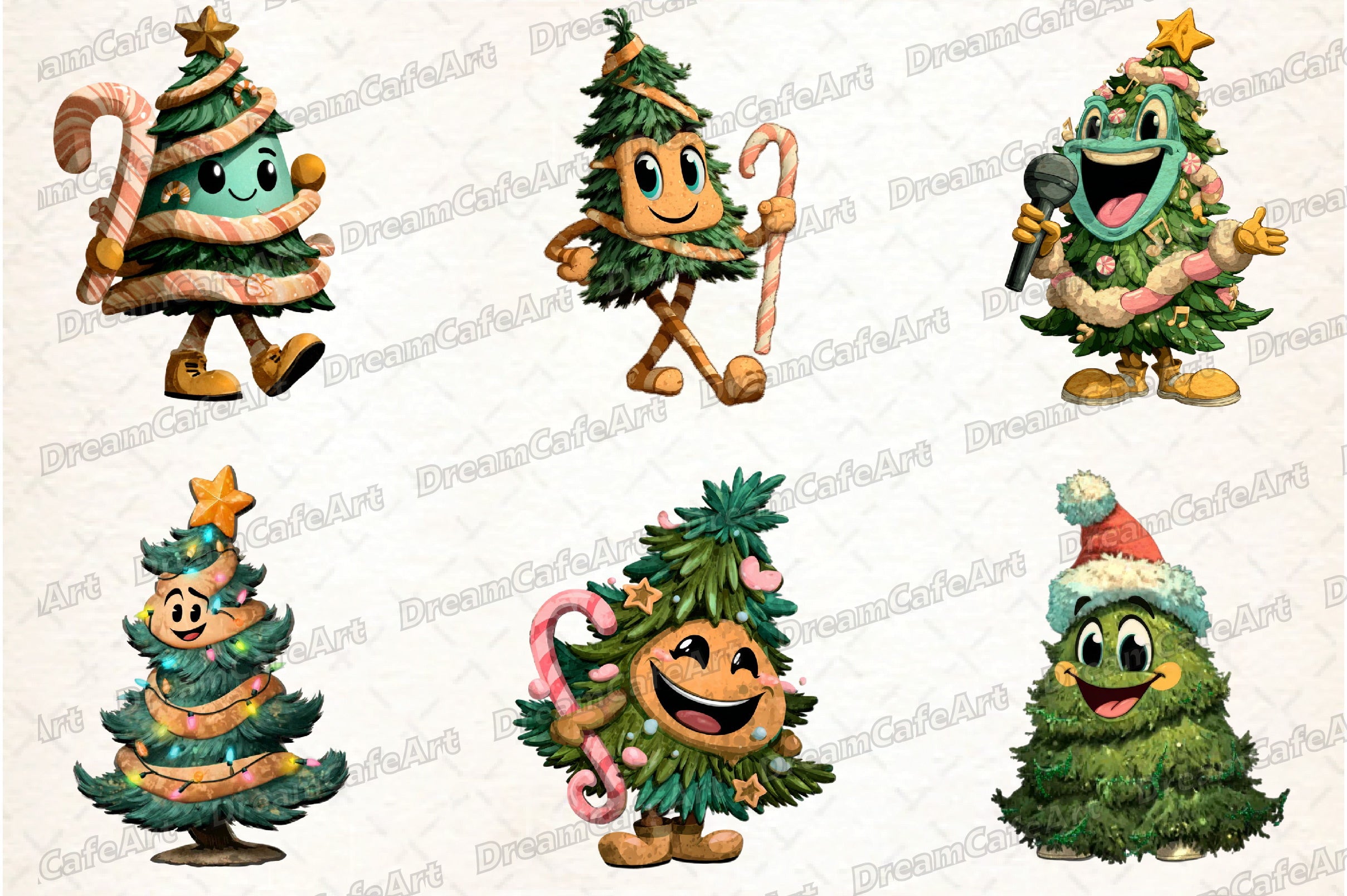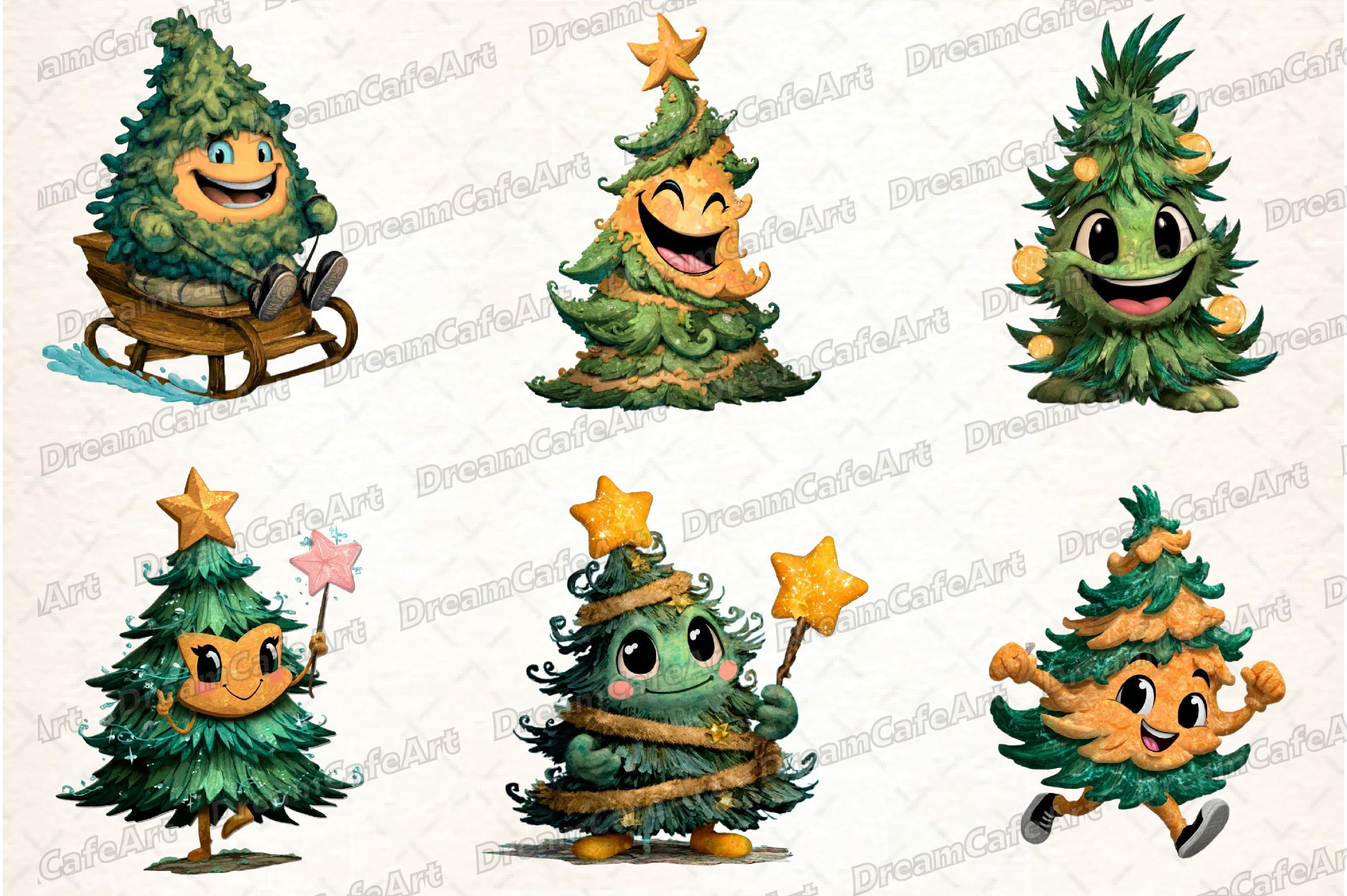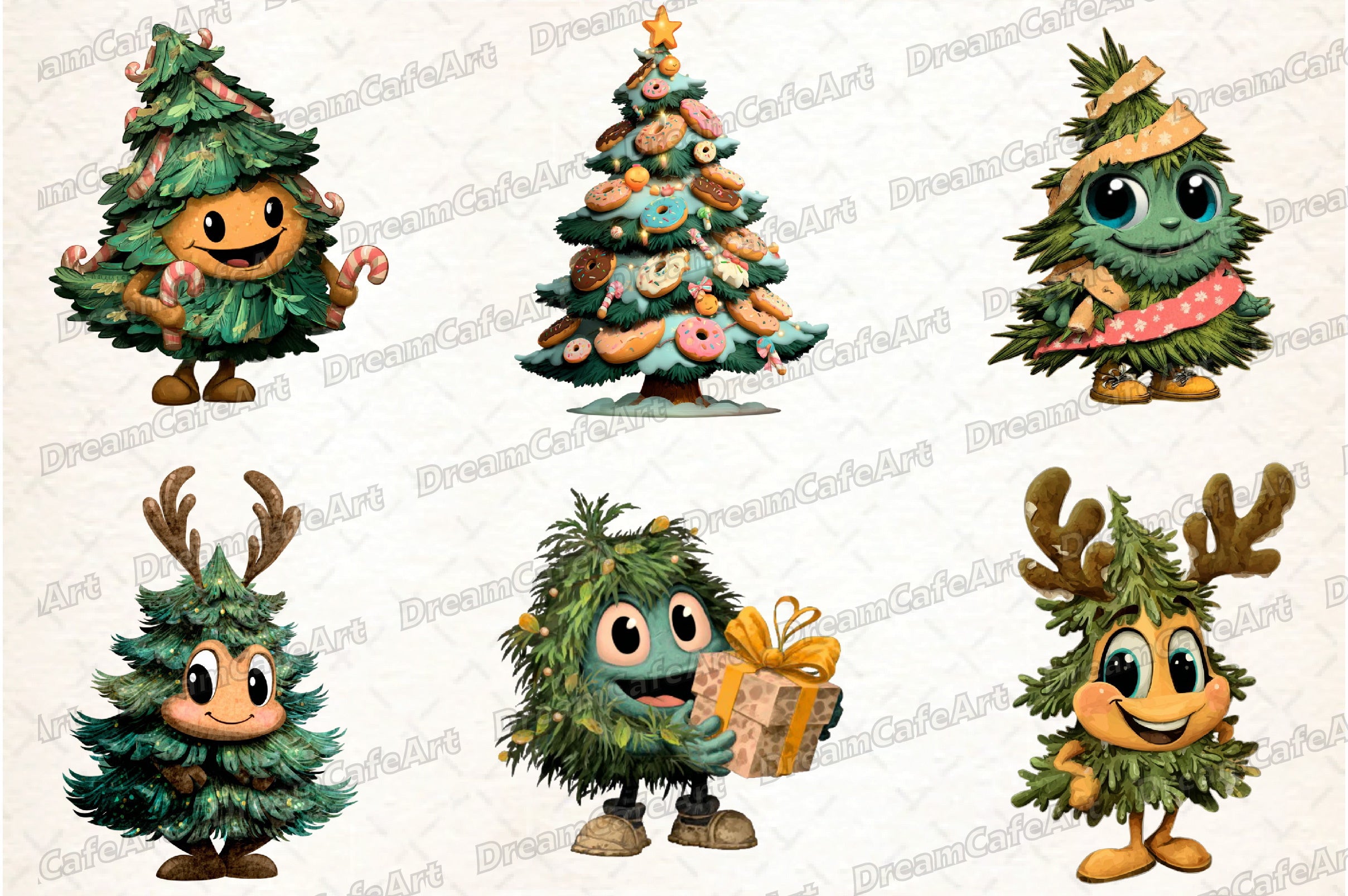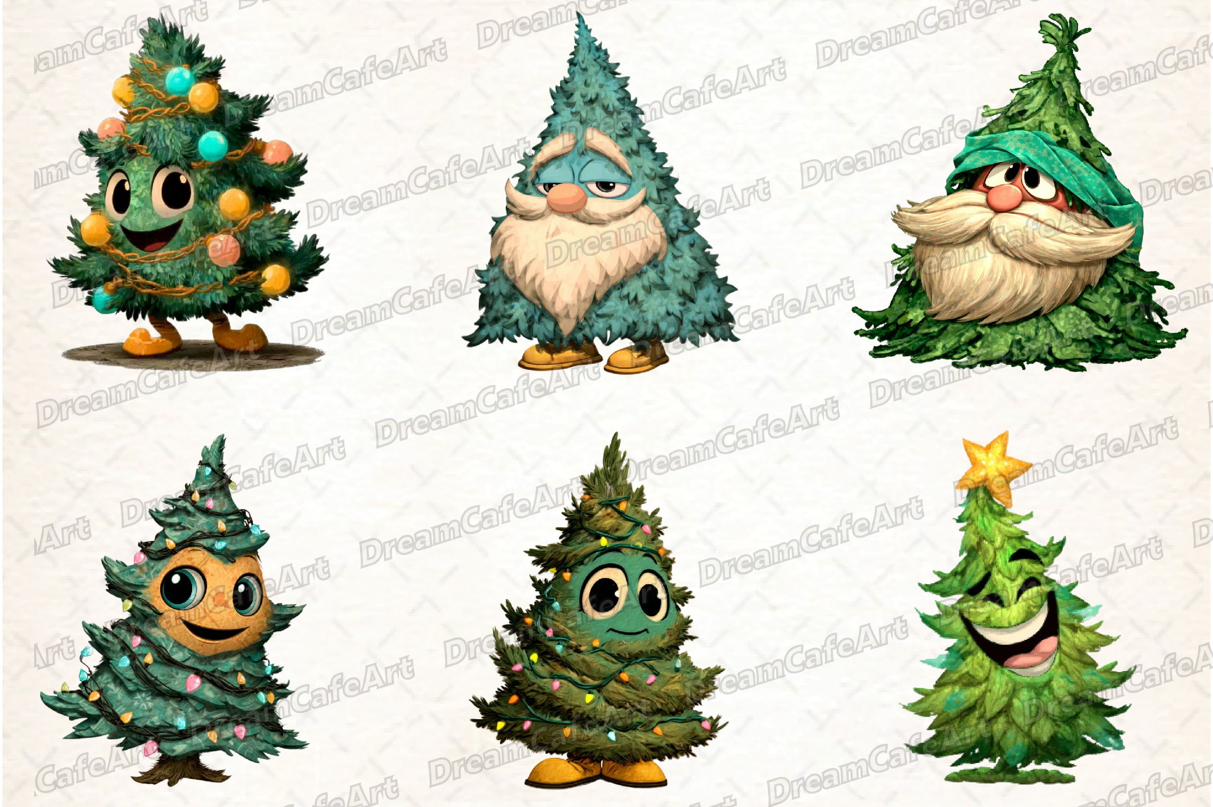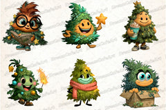Funny Christmas Tree Clipart Bundle