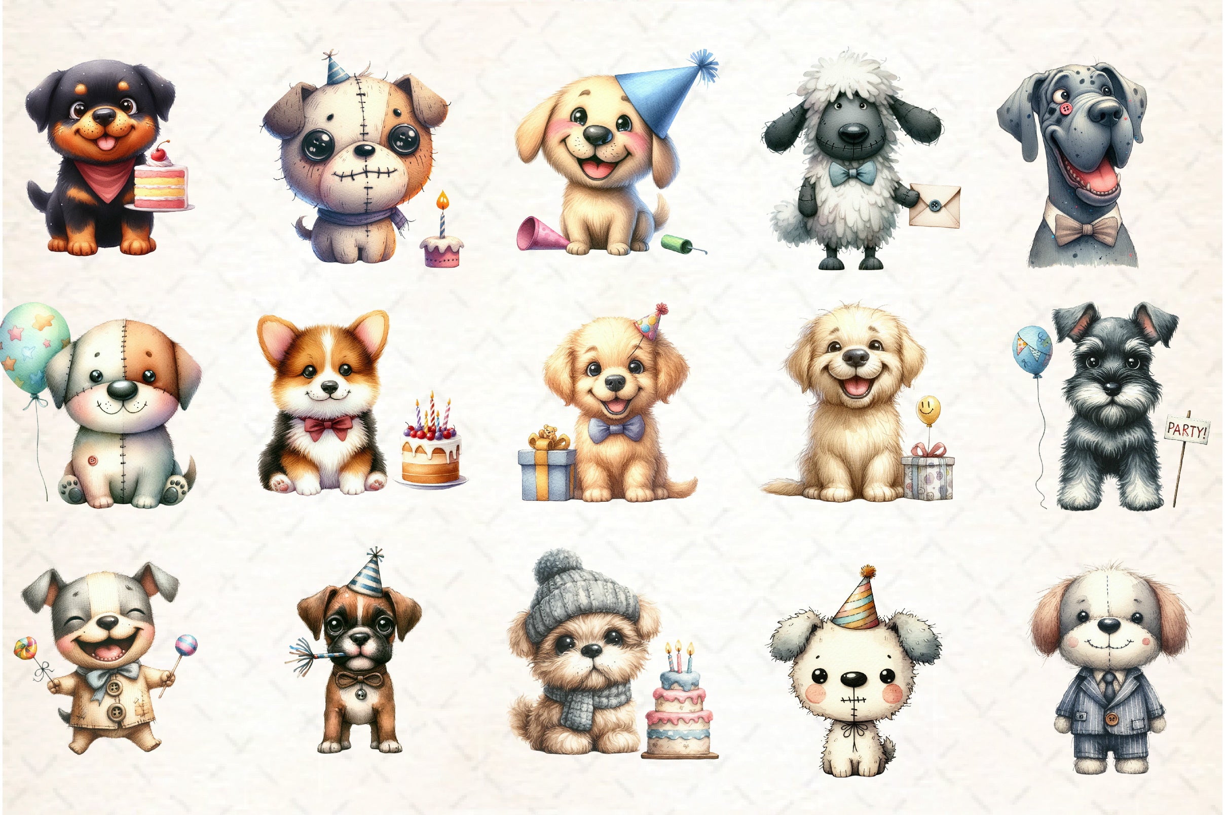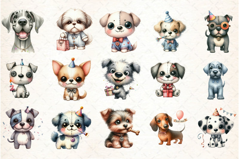 Funny Dog Birthday Clipart Bundle