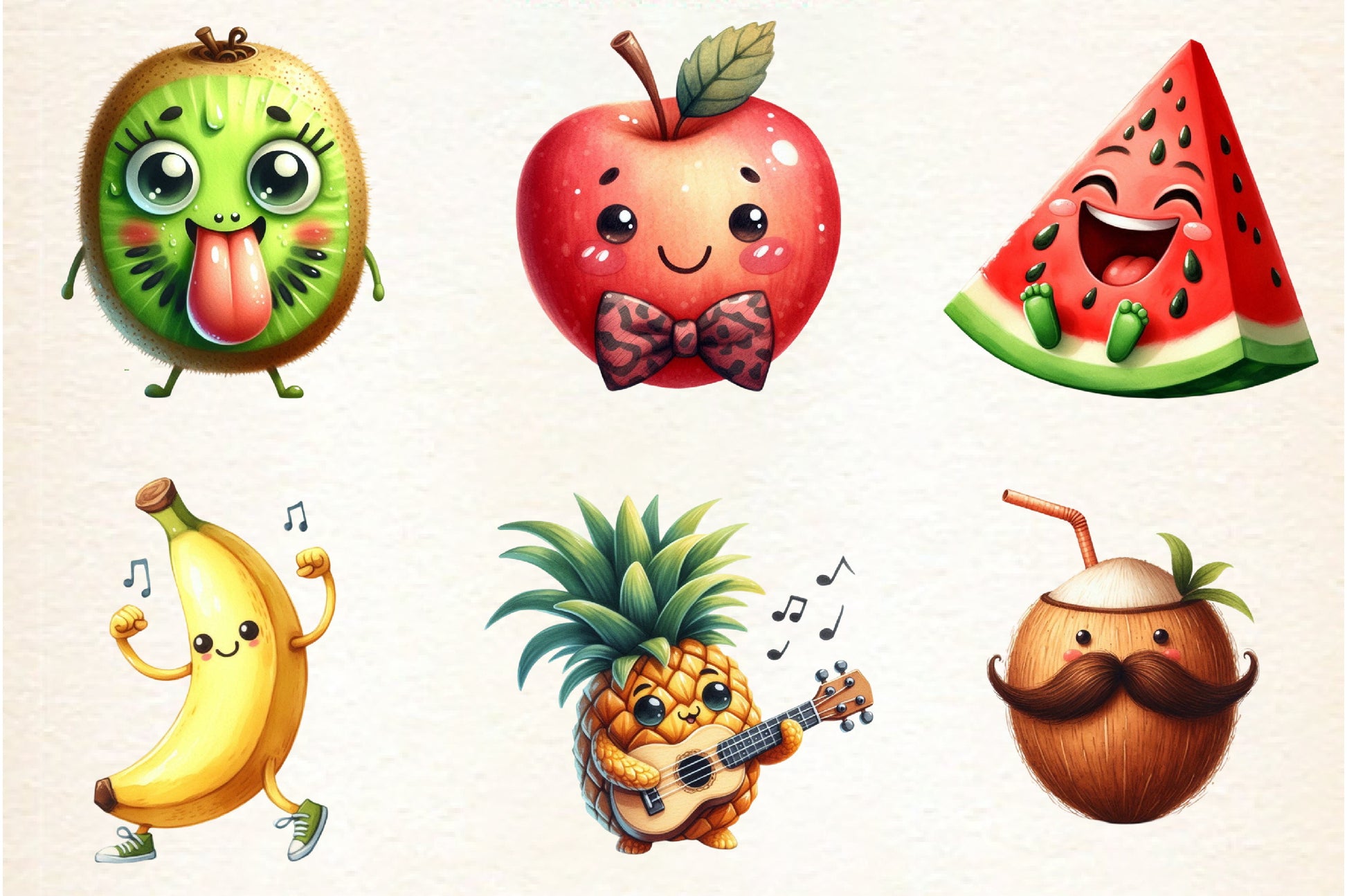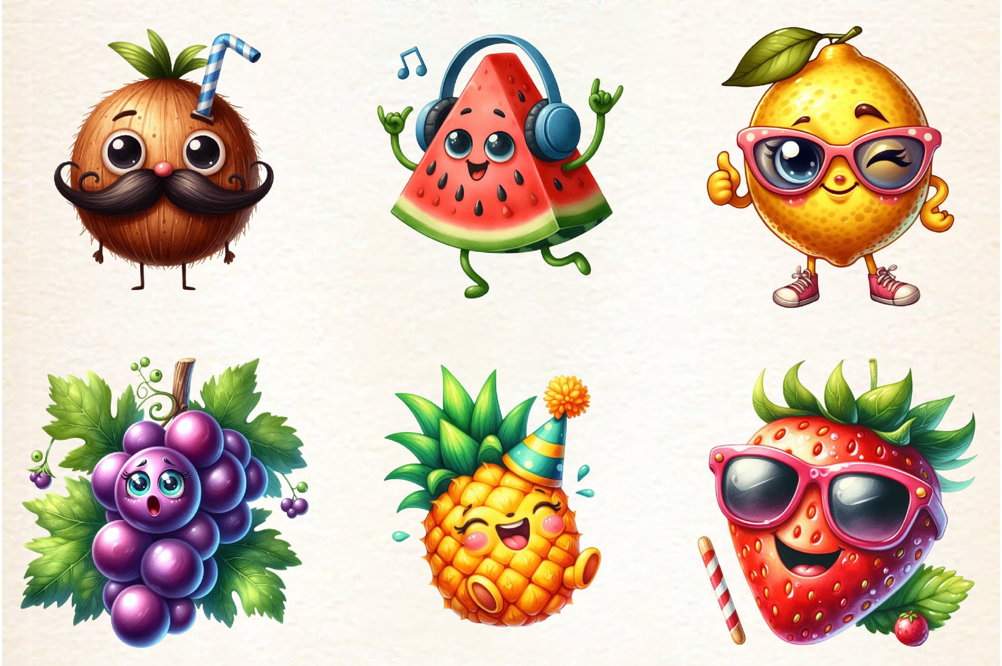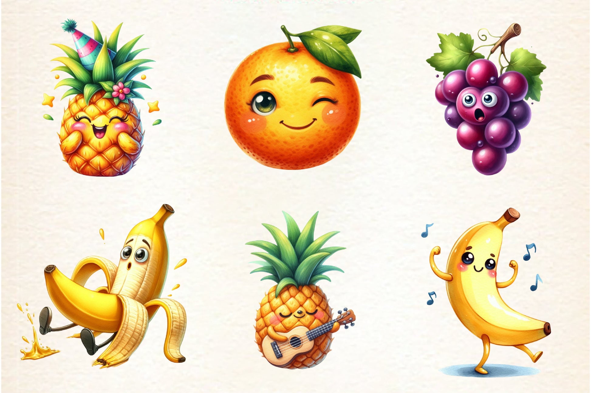 Explore endless possibilities with our Funny Fruit Clipart Bundle, offering a delightful array of quirky fruit characters for all your artistic needs.