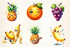 Unleash creativity with our Funny Fruit Clipart Bundle, featuring vibrant and whimsical fruit designs perfect for playful projects and delightful decor.