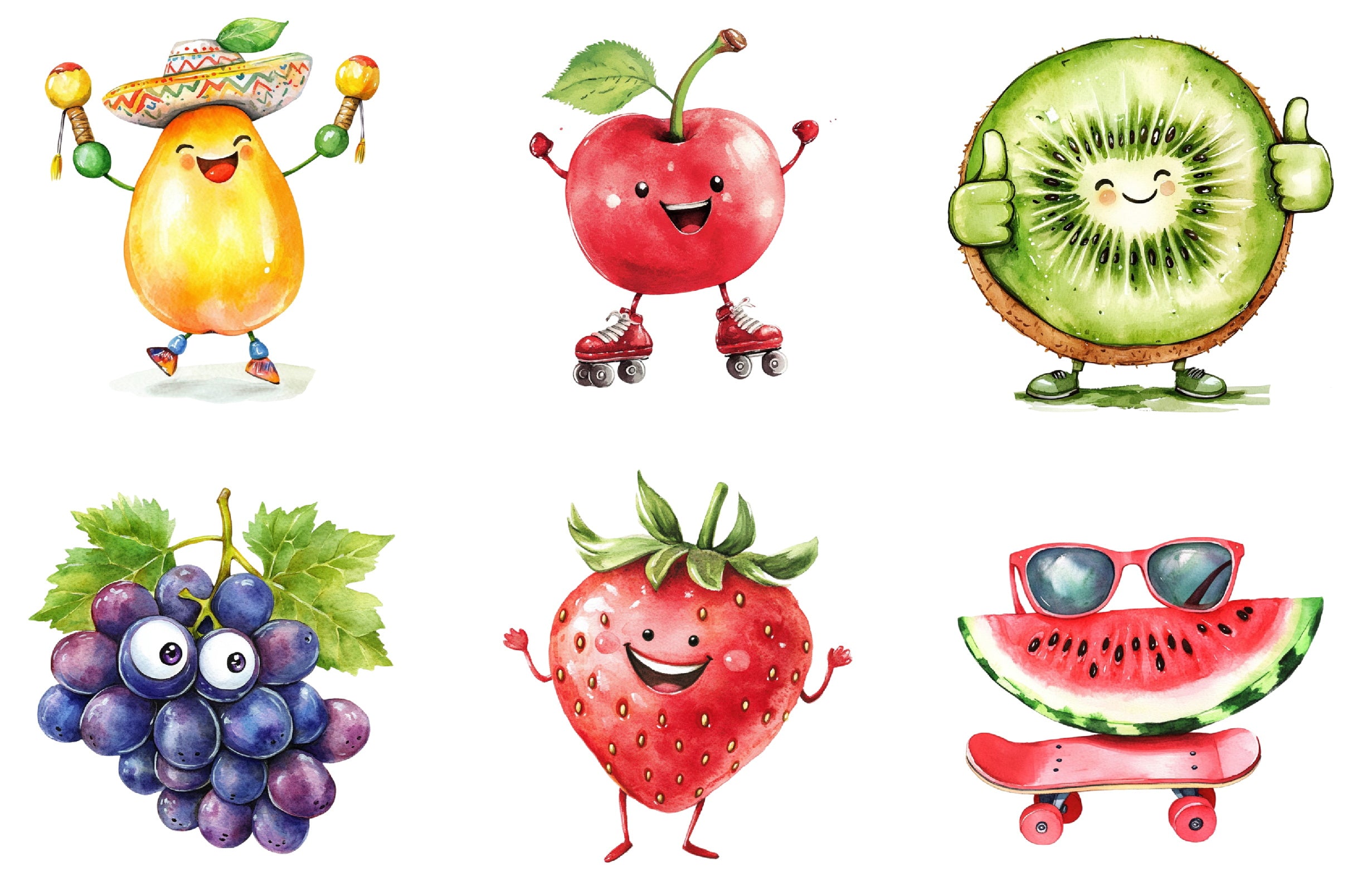 Explore endless possibilities with our Funny Fruit Clipart Bundle, offering a delightful array of quirky fruit graphics for all your artistic needs.