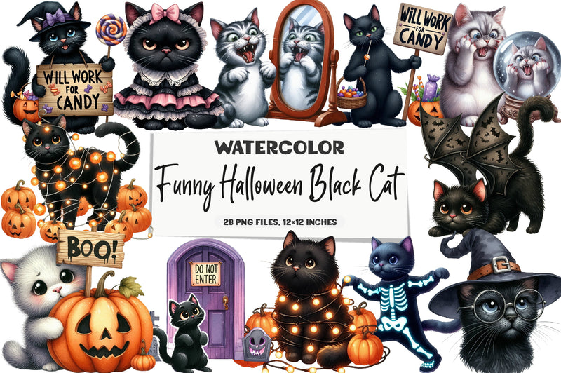 Unleash your creativity with our Funny Halloween Black Cat Clipart Bundle, featuring whimsical and spooky cat designs perfect for all your Halloween projects. Ideal for digital scrapbooking, party invitations, and festive crafts, these high-quality illustrations add a playful touch to any creation. Dive into the magic of Halloween with this unique collection, designed to inspire and delight. Perfect for crafters, designers, and cat lovers alike, this bundle is your go-to resource for all things Halloween. Transform your projects with these charming black cat graphics and make your Halloween celebrations unforgettable.