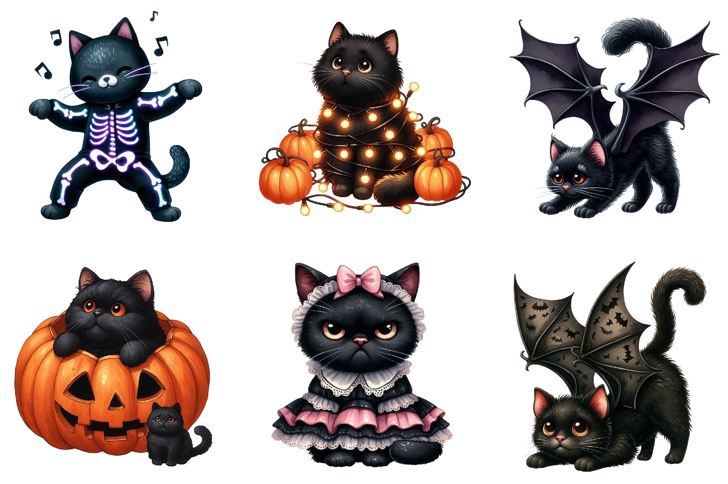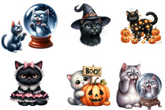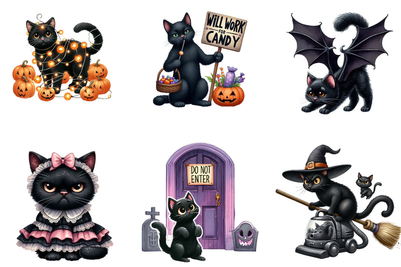 Funny Halloween Black Cat Clipart Bundle