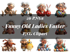 Laugh through spring with this Funny Old Ladies Easter Clipart set, featuring humorous elderly designs, perfect for playful Easter projects.