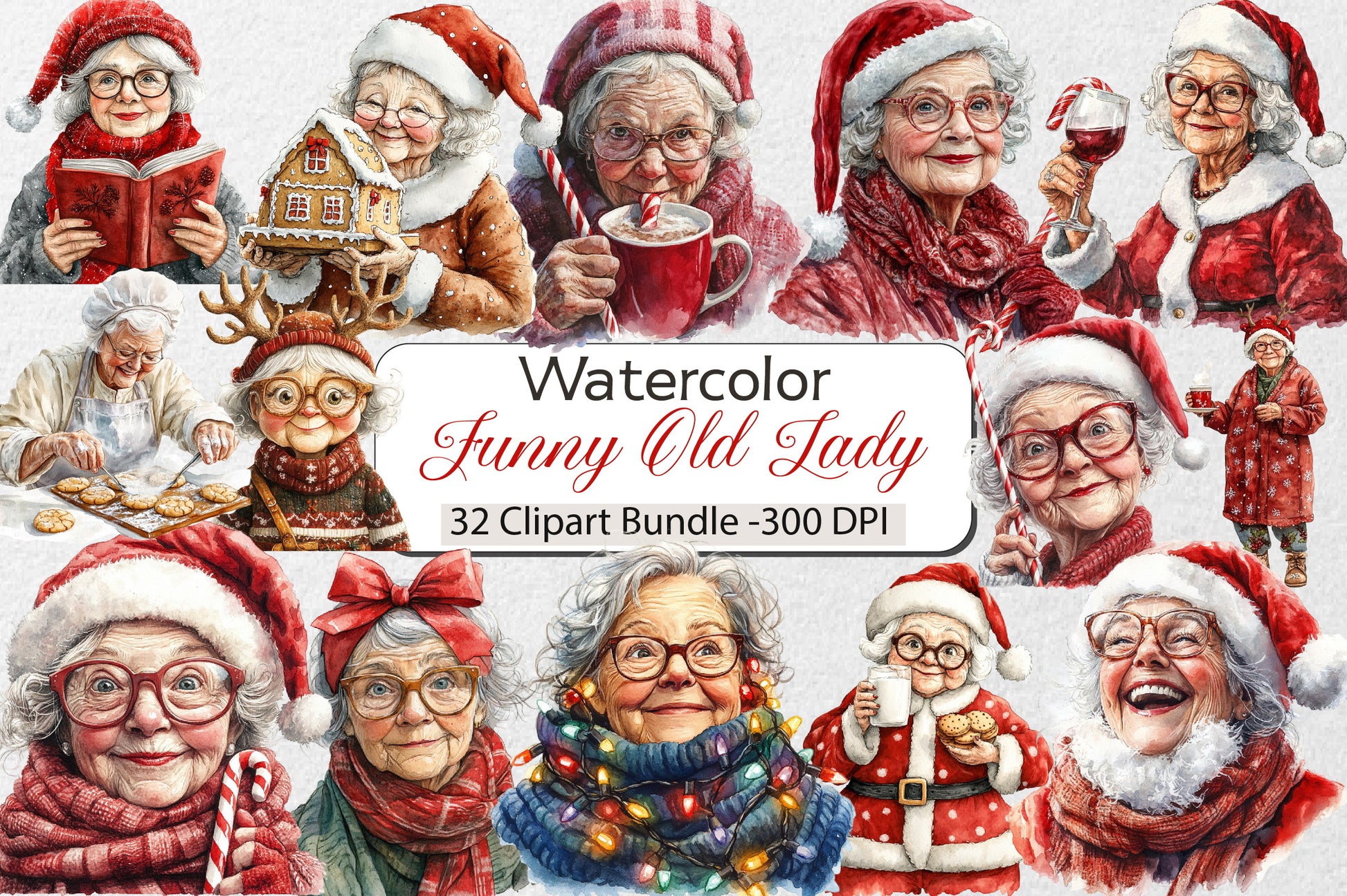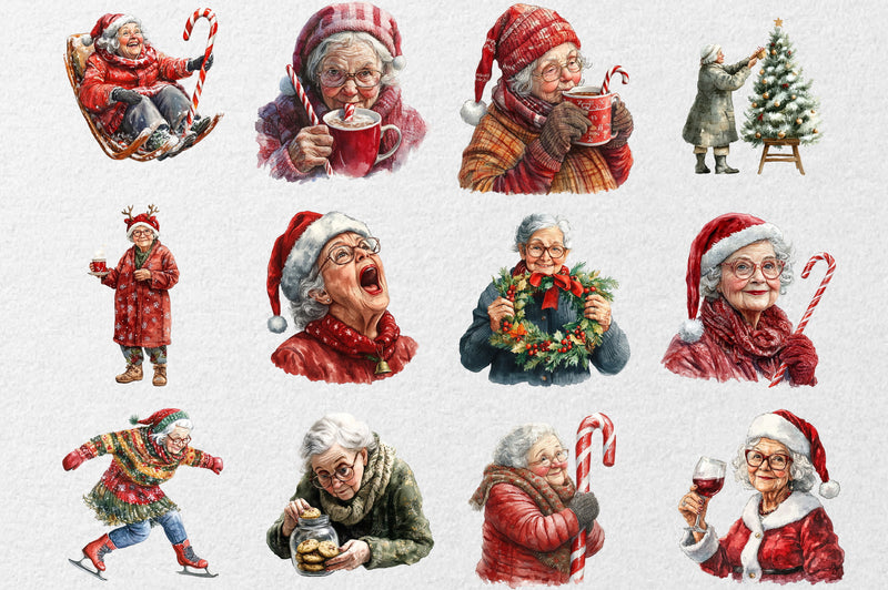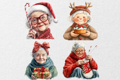 Funny Old Lady Christmas Clipart Bundle
