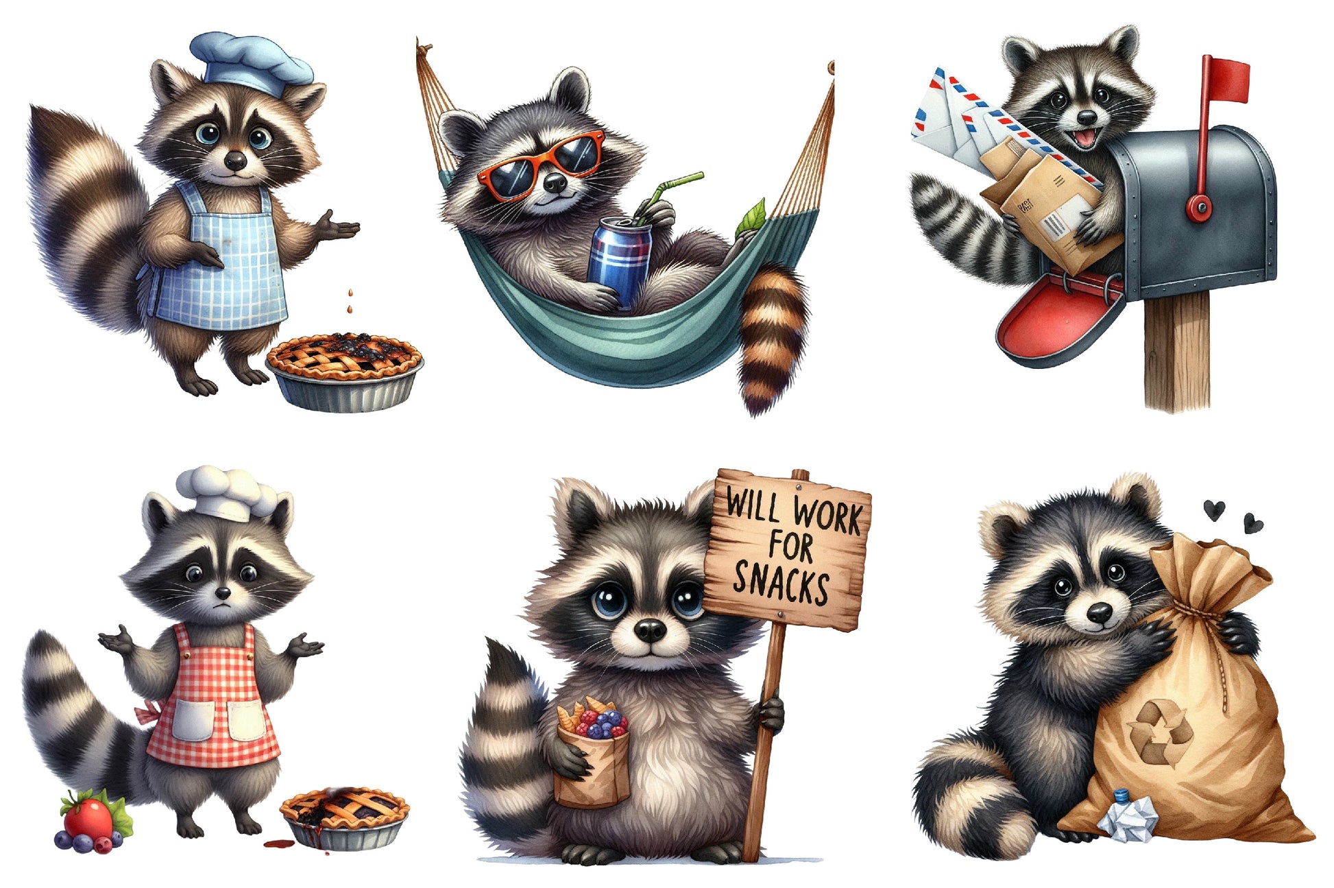 Unleash creativity with our Funny Raccoon Clipart Bundle, featuring whimsical raccoon designs perfect for playful projects and charming crafts. Ideal for digital scrapbooking, invitations, and more, these delightful illustrations add a touch of humor and charm to any creation. Explore endless possibilities with this versatile collection, designed to inspire and entertain. Perfect for DIY enthusiasts and professional designers alike, our raccoon clipart brings a unique flair to your artistic endeavors.