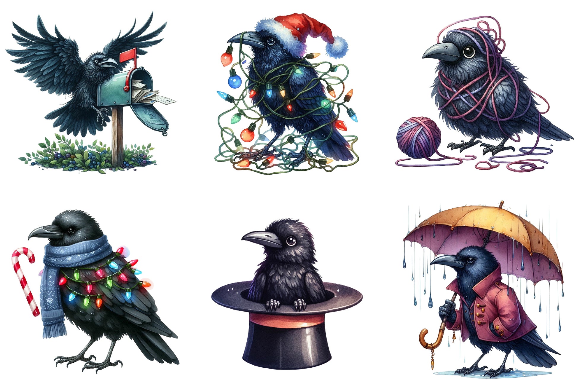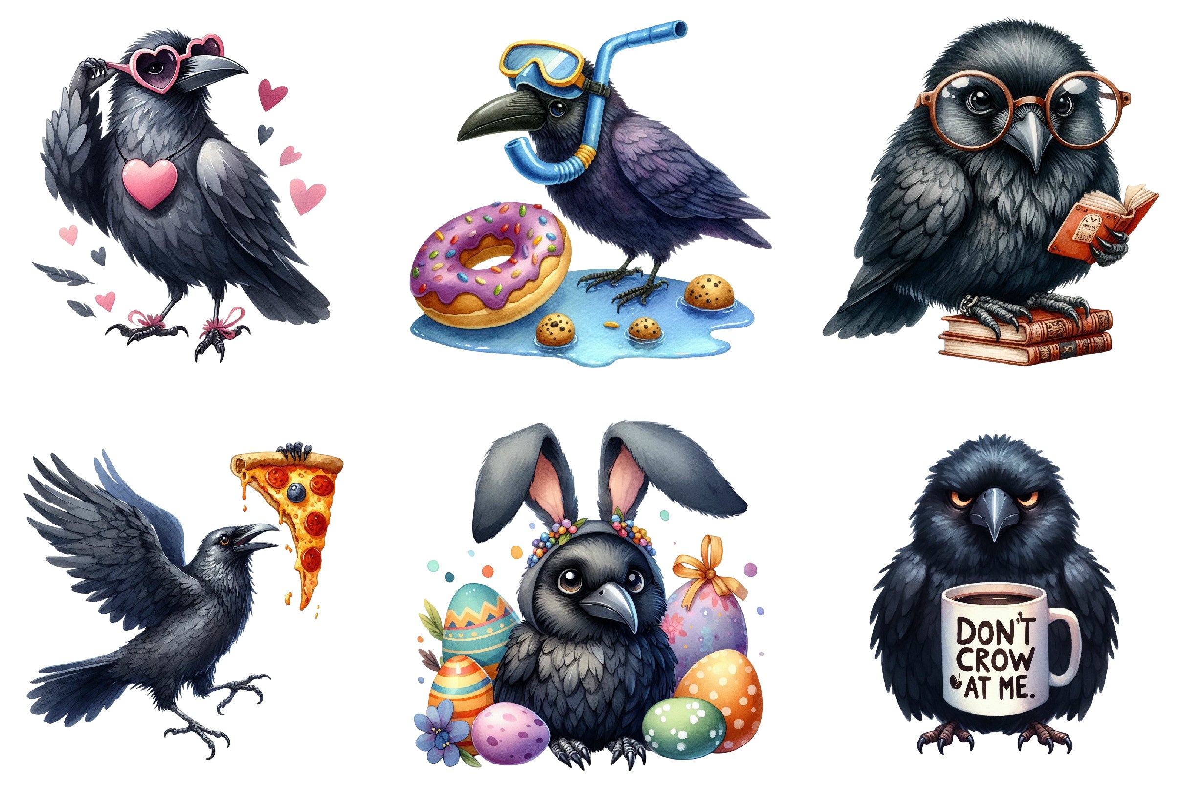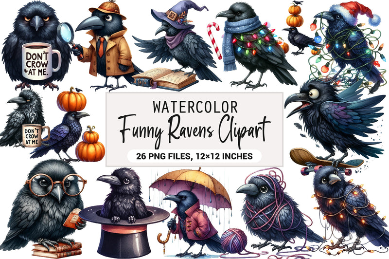 Funny Ravens Clipart Bundle