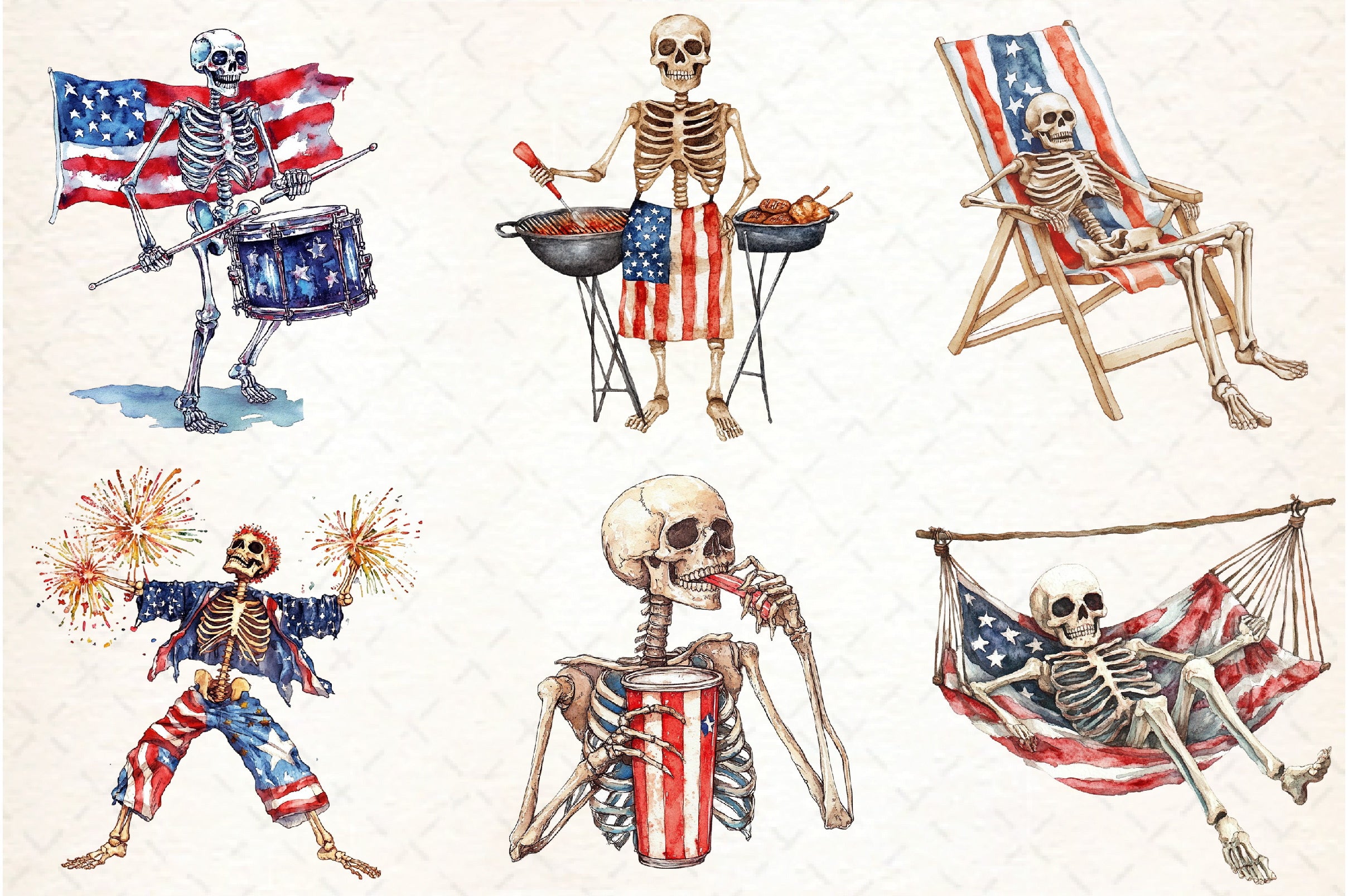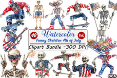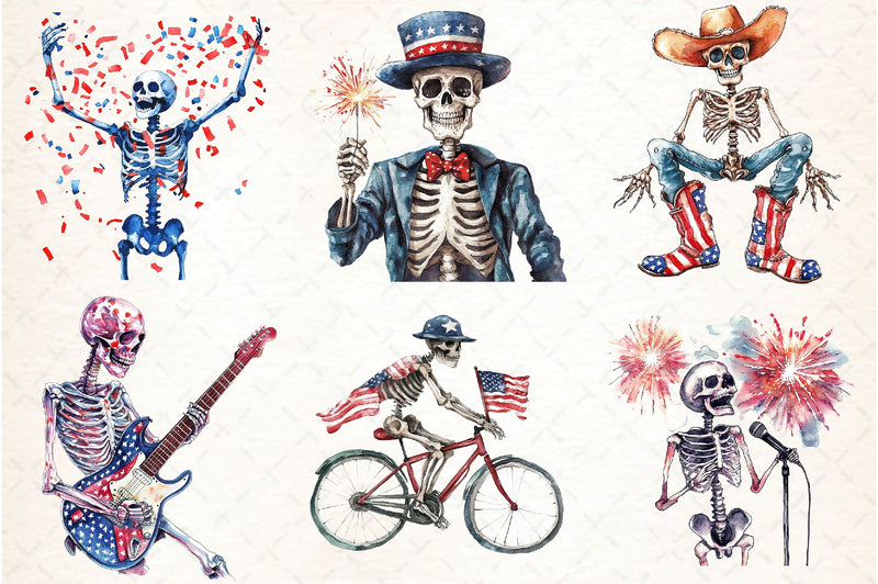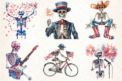 Funny Skeleton 4th of July Clipart Bundle
