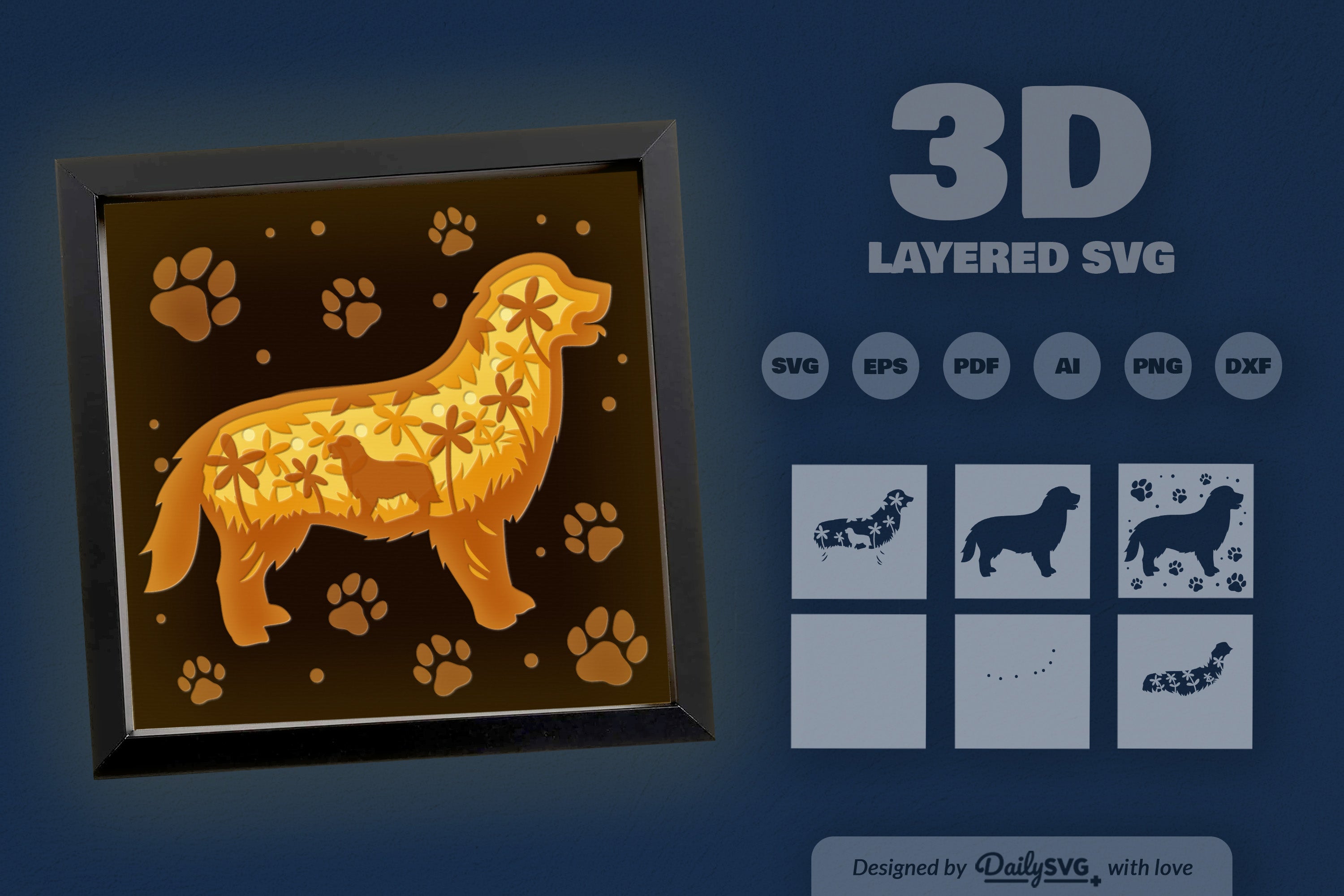 Golden Retriever Floral Silhouette Papercut SVG Bundle