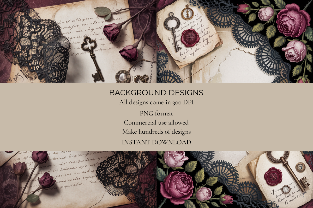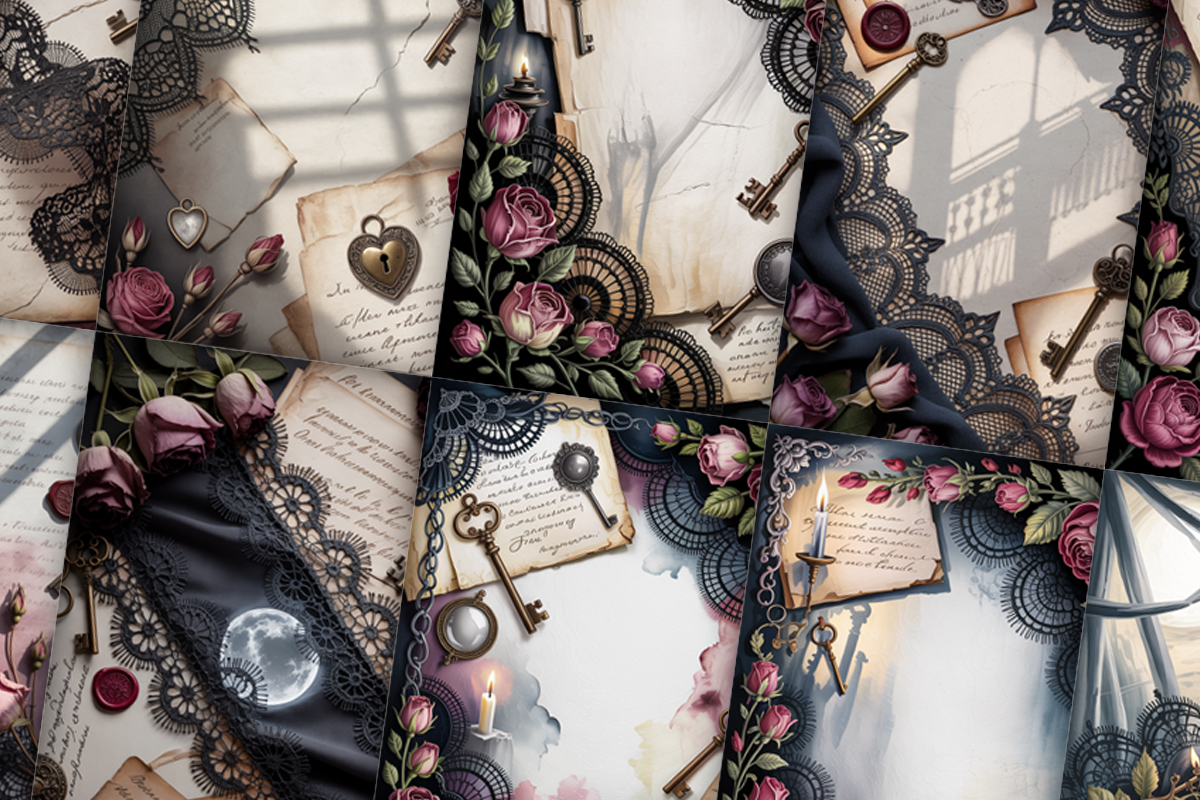 Unleash your creativity with our Gothic Lace Junk Journal Papers, featuring intricate lace patterns perfect for vintage-inspired crafts. Ideal for scrapbooking, journaling, and mixed media projects, these papers add a touch of elegance and mystery to your creations. Transform your art with unique designs that captivate and inspire.