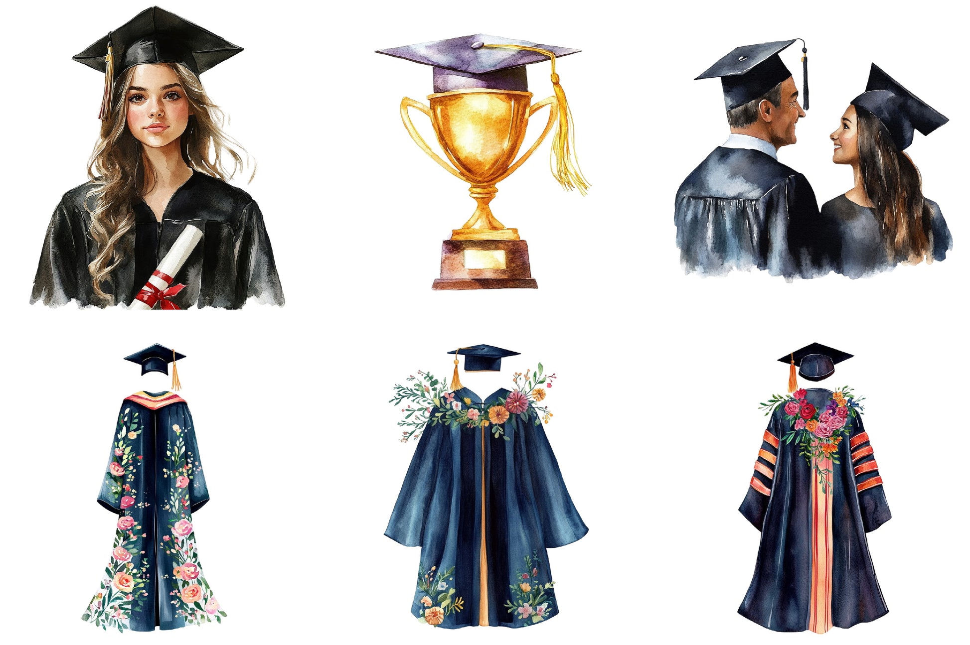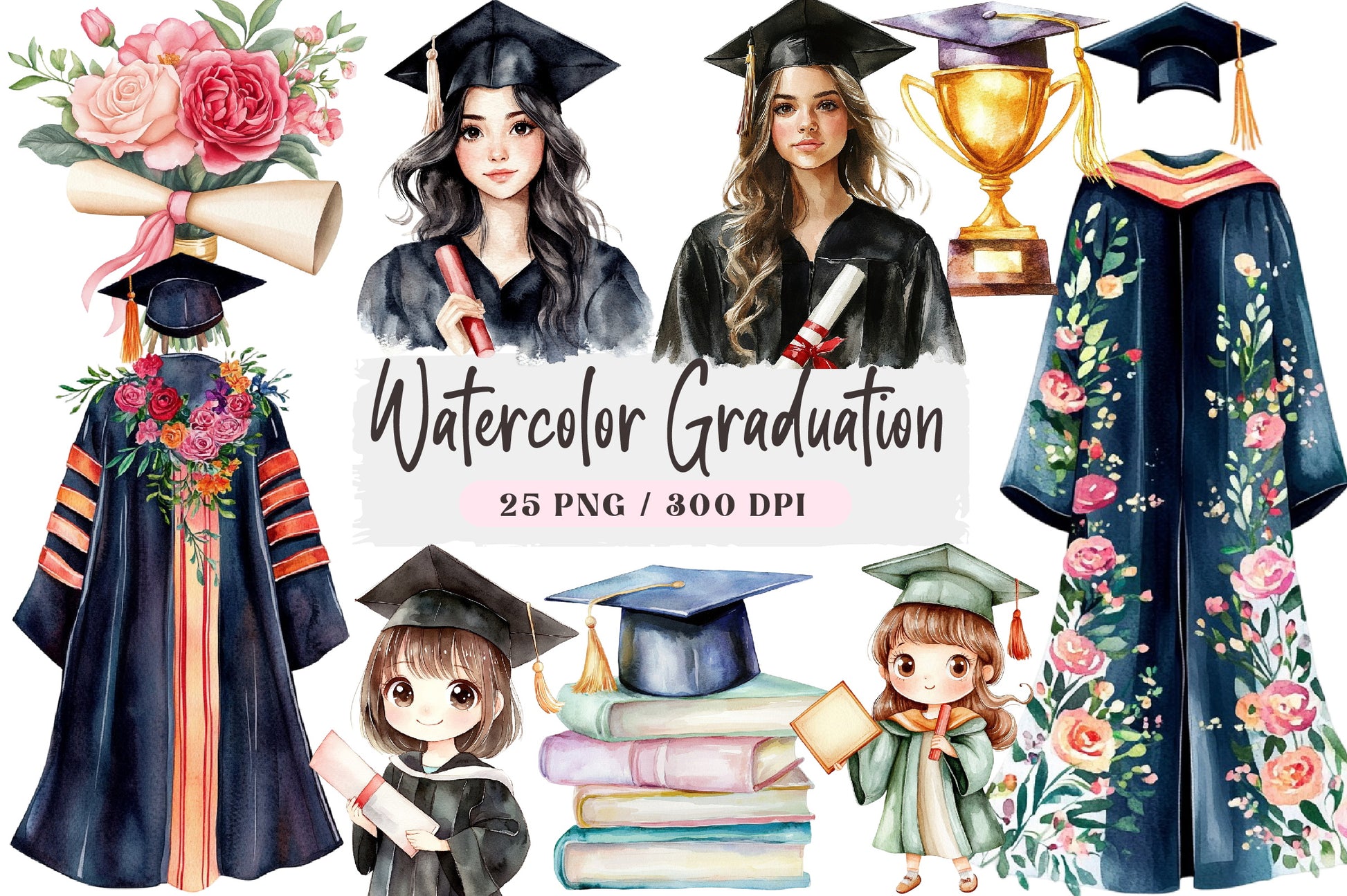 Celebrate academic achievements with our Graduation Clipart Bundle, featuring a diverse collection of high-quality, customizable designs perfect for graduation invitations, party decorations, and personalized gifts. Enhance your projects with vibrant, unique illustrations that capture the joy and pride of graduation day. Ideal for digital scrapbooking, DIY crafts, and more, this bundle is a must-have for creating memorable keepsakes. Download now and make your graduation celebrations unforgettable!