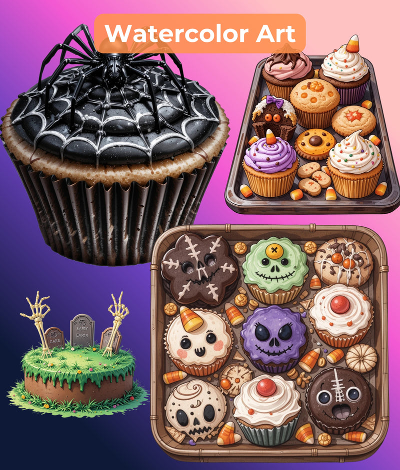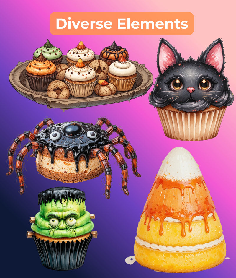 Unleash your creativity with our Halloween Cakes & Cupcakes Clipart Bundle, perfect for spooktacular party invitations and eerie decorations. Dive into a world of ghoulishly delightful designs, ideal for crafting hauntingly beautiful projects. Whether you're designing for a Halloween bash or creating eerie-themed crafts, this bundle offers a bewitching array of options. Elevate your seasonal projects with these high-quality, spine-chilling illustrations, perfect for adding a touch of Halloween magic to any creation.