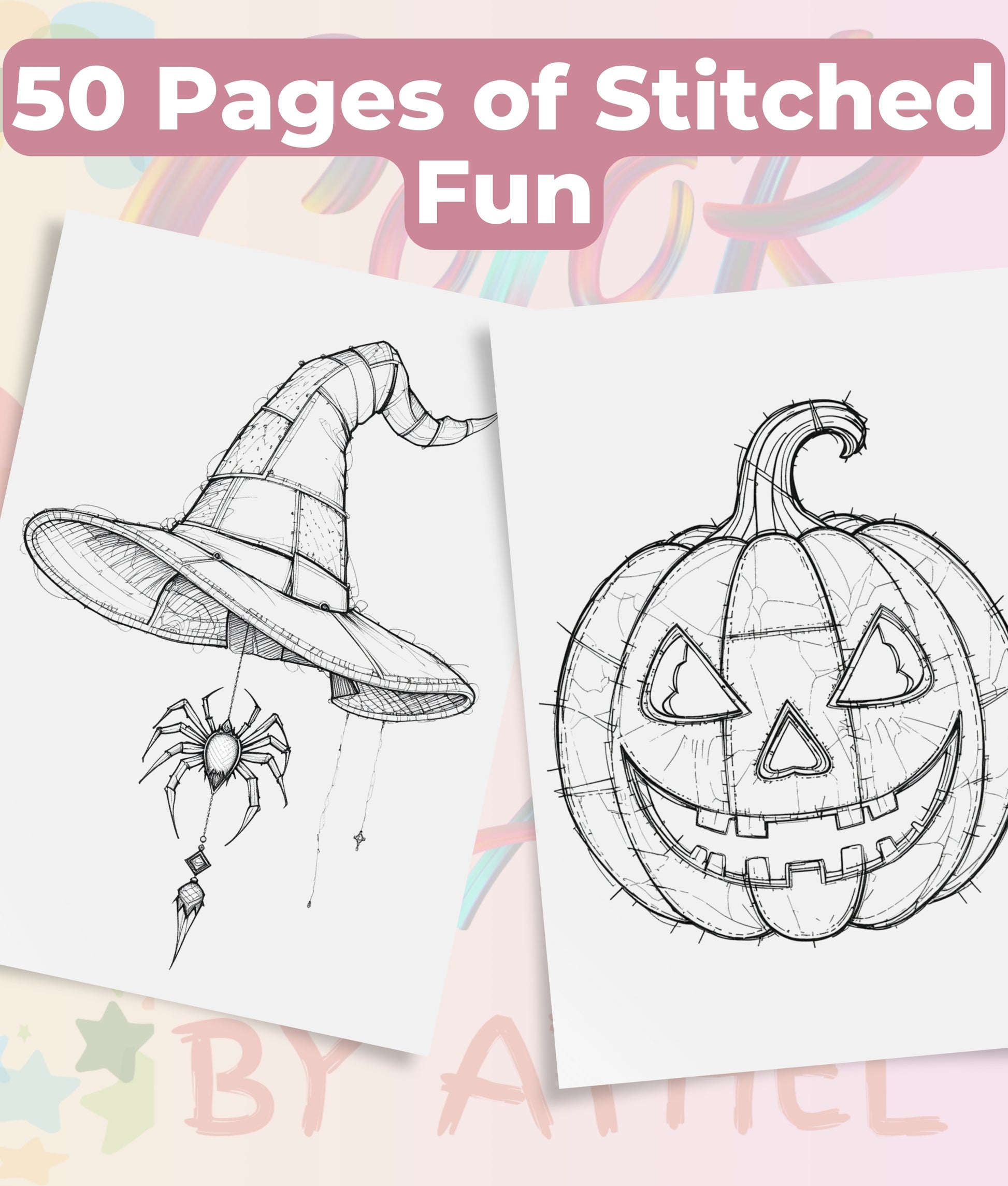 Halloween Patchwork Stitched Coloring Books Bundle Vol 2