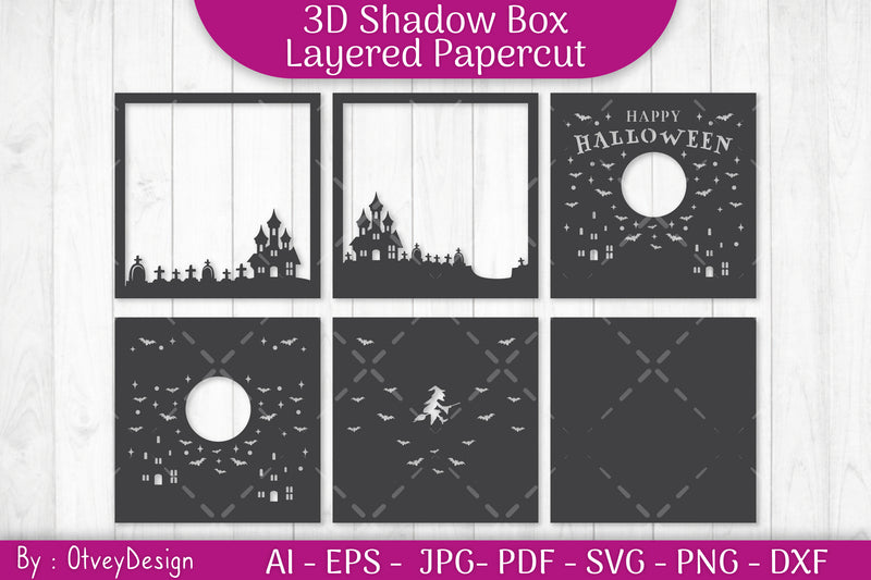 Transform your space with the Halloween Scene 3D SVG Shadow Box Bundle, featuring intricately designed spooky scenes perfect for crafting eerie decorations. Ideal for Halloween enthusiasts and DIY crafters seeking to create a hauntingly beautiful atmosphere.