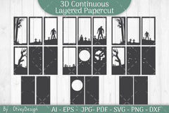Halloween Scene Continuous Layered Papercut SVG Bundle
