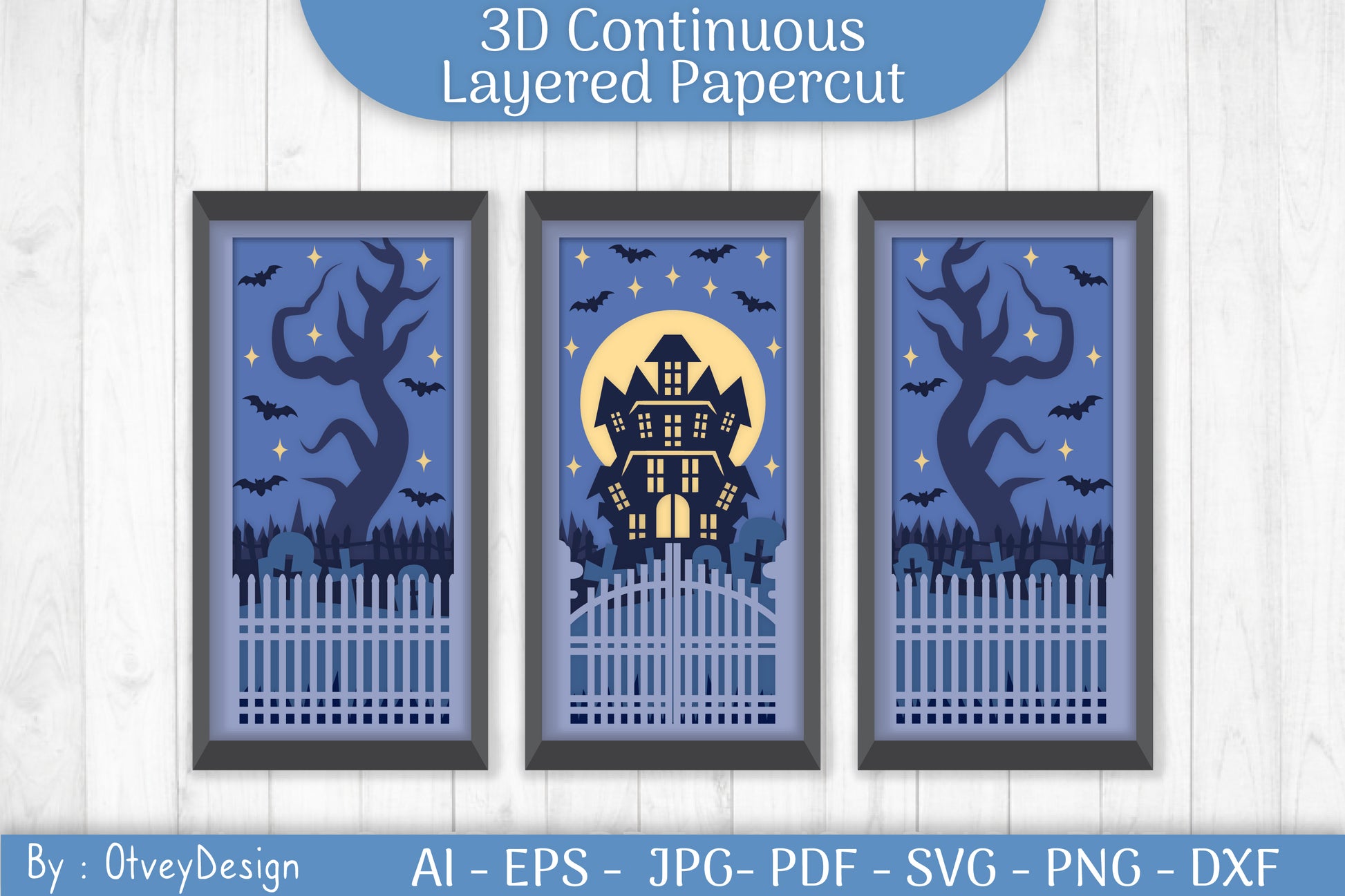 Transform your Halloween crafts with the Halloween Scene Layered Papercut SVG Bundle. Featuring intricate, spooky designs perfect for creating unique decorations, cards, and gifts. Ideal for crafters and DIY enthusiasts looking to add a touch of Halloween magic to their projects.