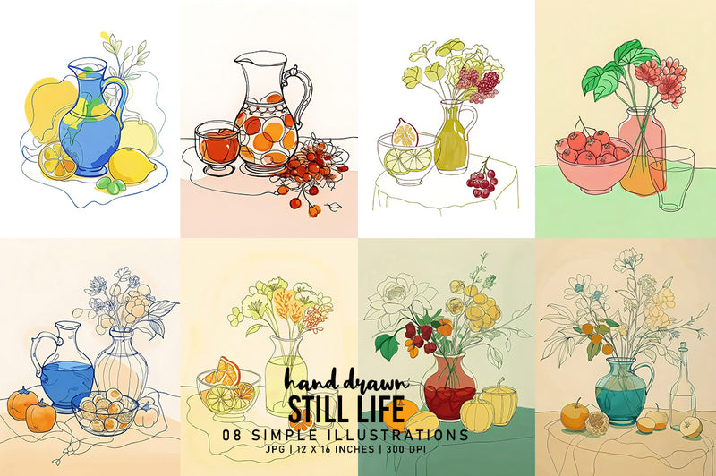 Enhance your space with our Hand Drawn Still Life - Wall Art, featuring exquisite, detailed illustrations that bring elegance and charm to any room. Perfect for art lovers and home decorators seeking unique, timeless pieces.