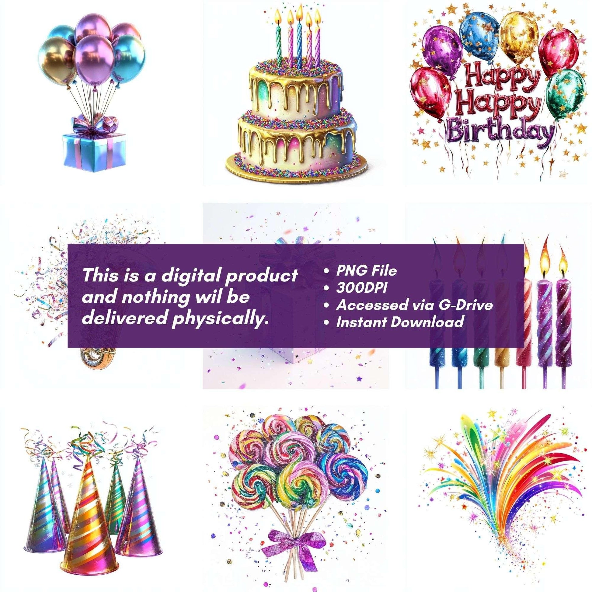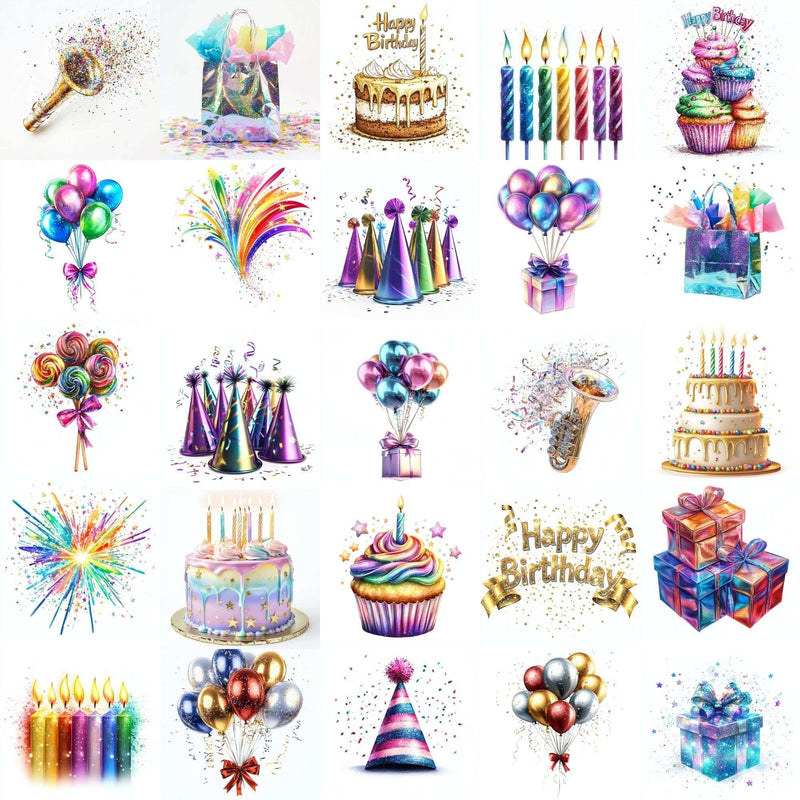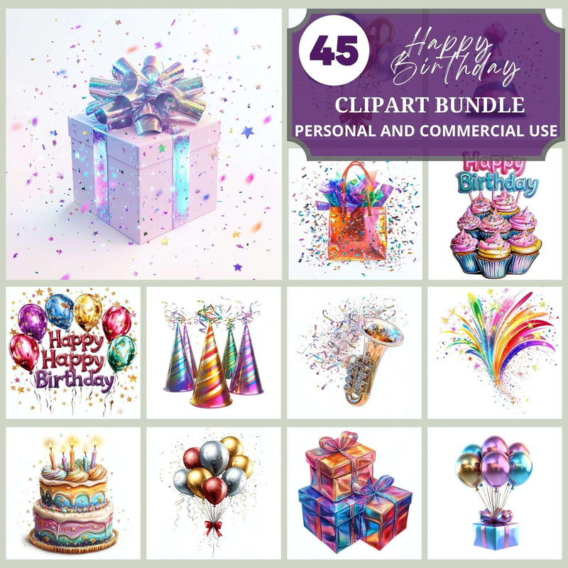 Celebrate big with this Happy Birthday Clipart set, featuring festive designs, ideal for birthday crafts.