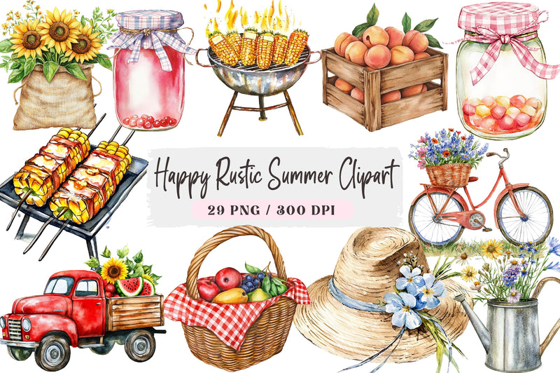 Enhance your creative projects with the Happy Rustic Summer Clipart Bundle, featuring charming rustic designs perfect for seasonal crafts and digital artwork. This versatile collection includes vibrant summer elements, ideal for invitations, scrapbooking, and more. Unleash your creativity with these high-quality, easy-to-use graphics that bring a touch of rustic charm to any project.