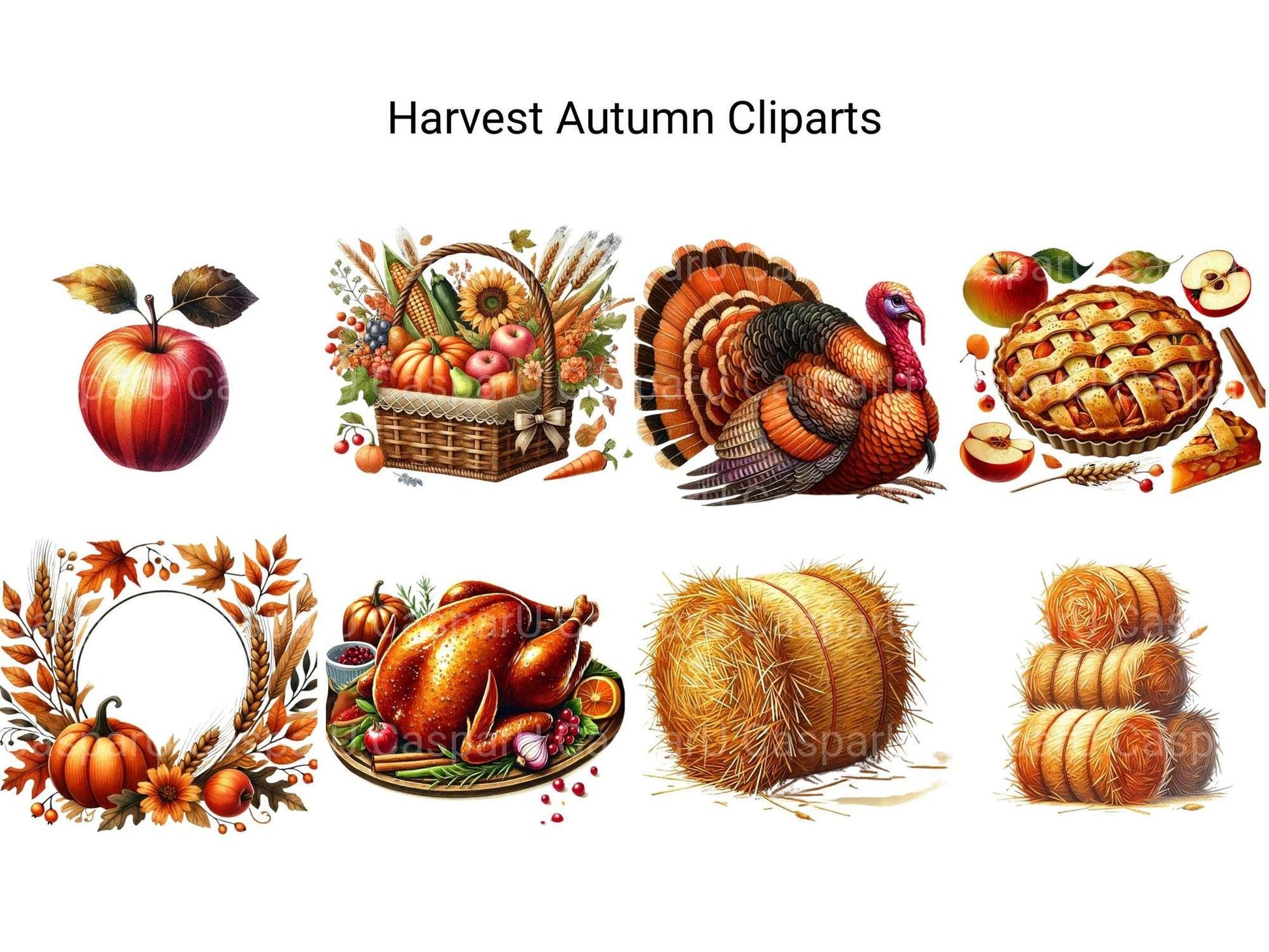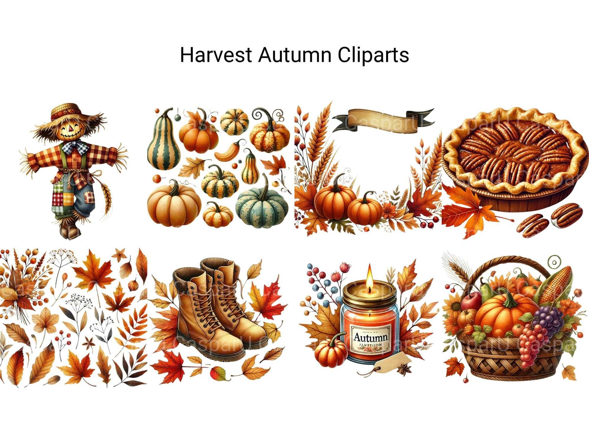 Gather the season with this Harvest Autumn Clipart set, featuring harvest-themed designs, ideal for rustic fall creations.
