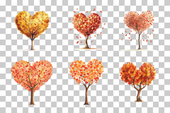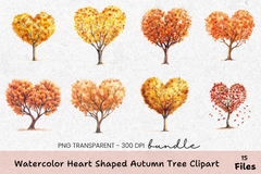 Heart Shaped Autumn Tree Clipart Bundle