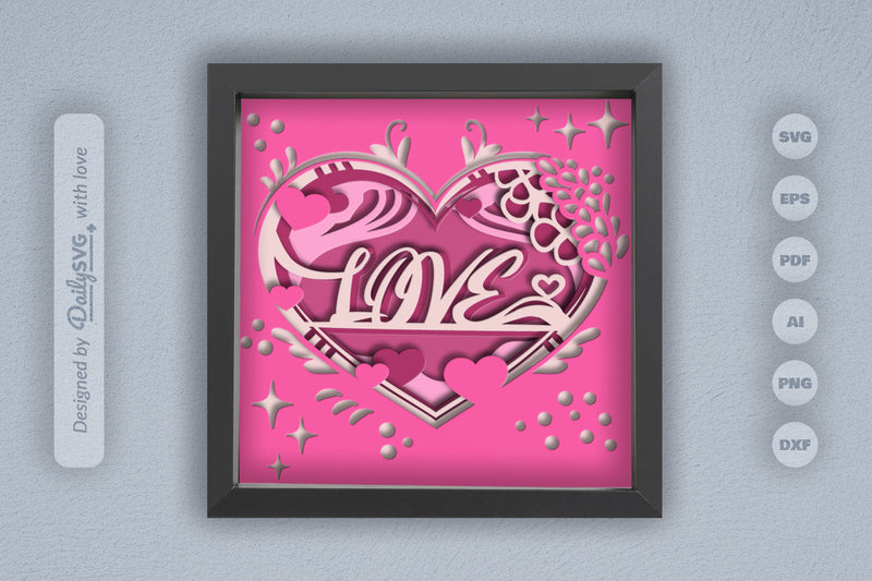 Heart Valentine Papercut Shadow Box SVG Bundle
