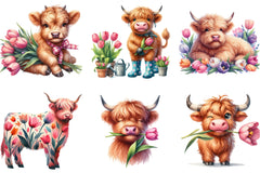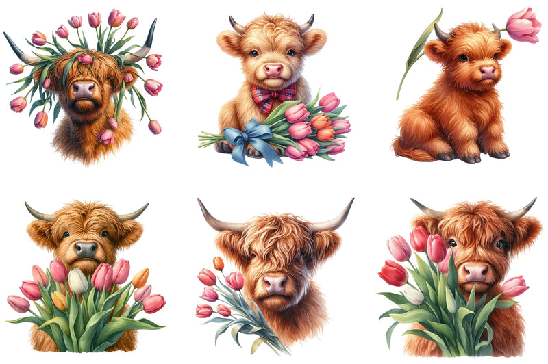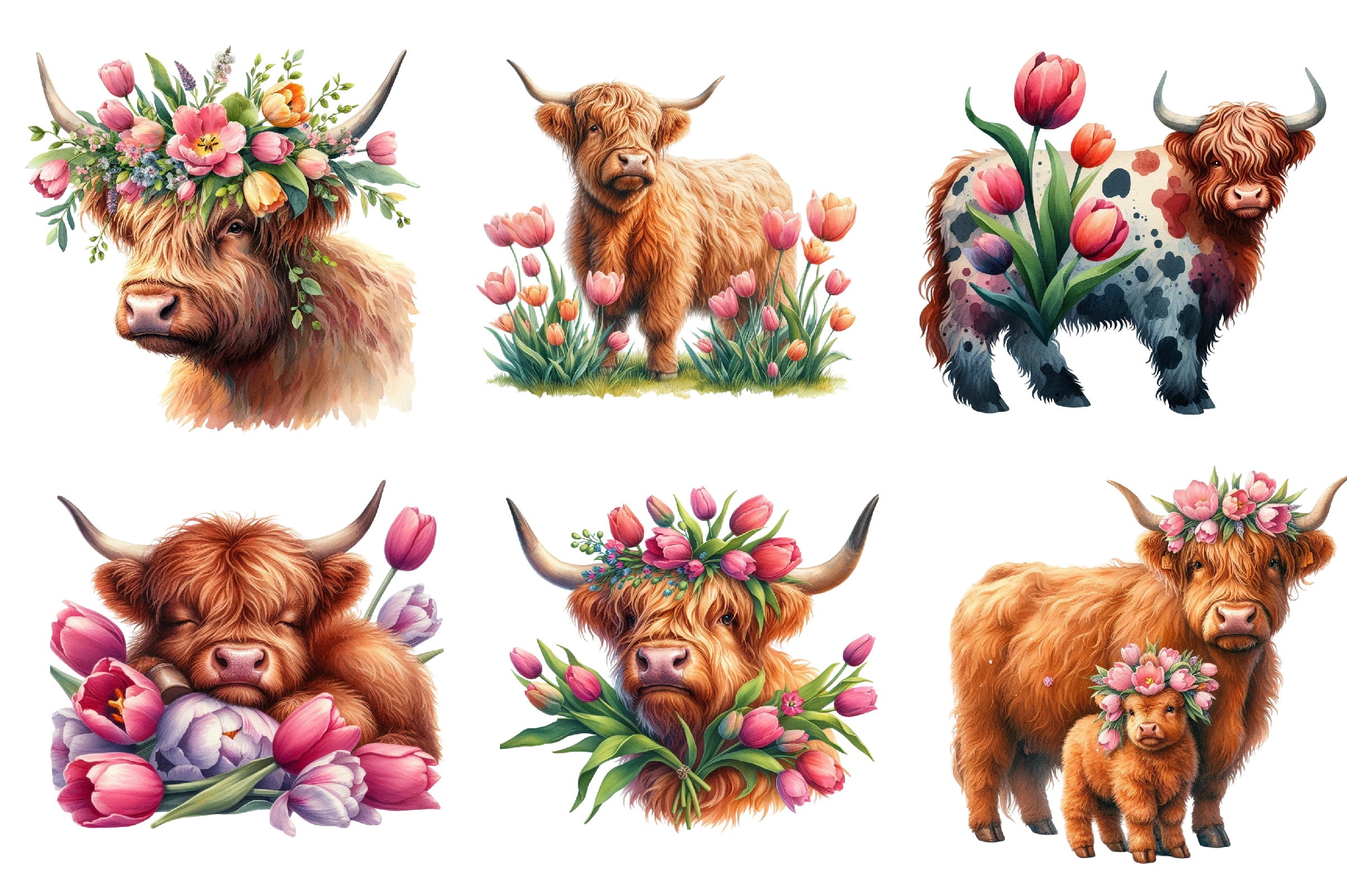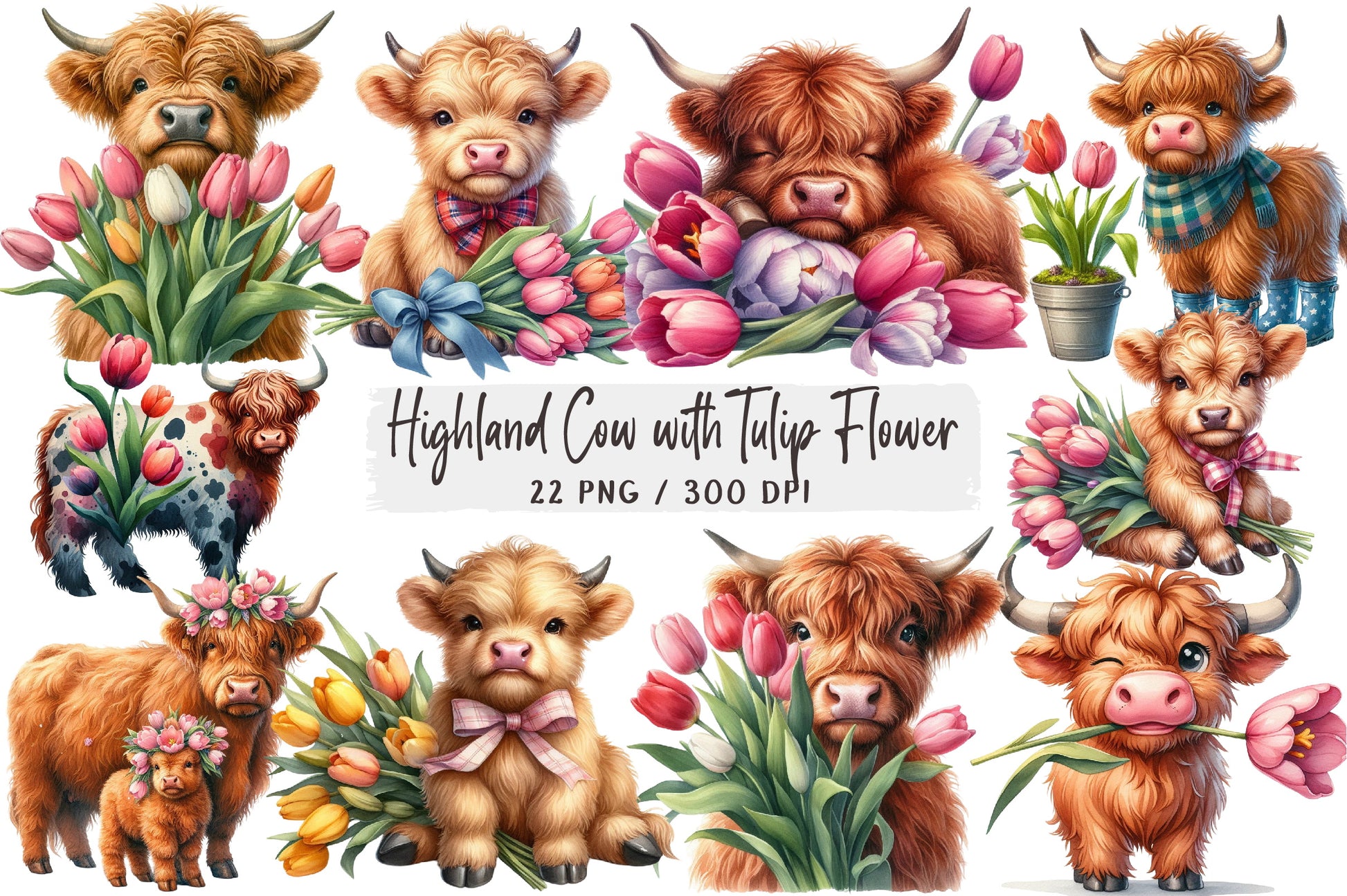 Enhance your creative projects with the Highland Cow Tulip Flower Clipart Bundle. This charming collection features delightful highland cow and tulip designs, perfect for adding a touch of rustic elegance to your crafts. Ideal for digital scrapbooking, invitations, and more, these high-quality cliparts bring a unique flair to any project. Unleash your creativity with this versatile bundle and transform your designs into captivating works of art.