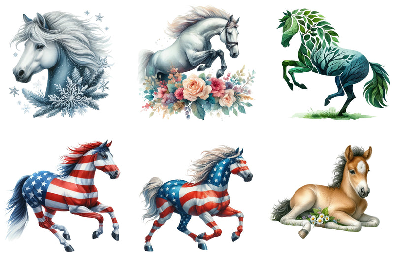 Unleash creativity with our Horse Clipart Bundle, featuring a stunning collection of horse illustrations perfect for digital projects, scrapbooking, and crafts. Ideal for equestrian enthusiasts, this bundle offers high-quality, versatile designs to enhance your creative endeavors. Transform your projects with these captivating horse graphics, suitable for invitations, posters, and more. Elevate your artistic creations with our unique horse clipart, designed to inspire and impress.