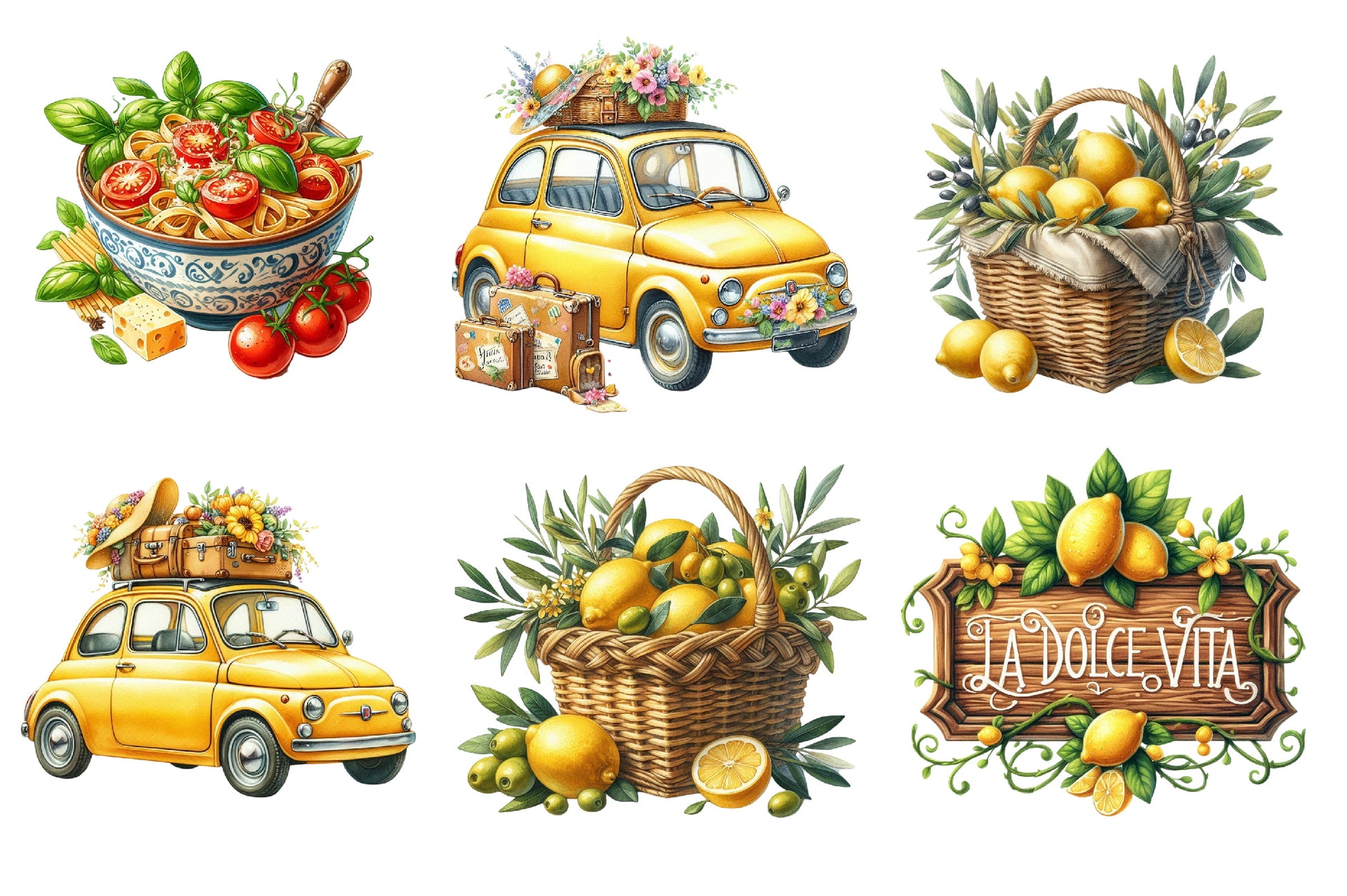 Capture the essence of Italy with our Italian Summer Clipart Bundle, featuring vibrant illustrations perfect for travel-themed projects, wedding invitations, and more. Elevate your designs with authentic Italian flair.