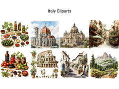 Immerse yourself in the captivating allure of Italy with digital clip art capturing its historic landmarks, scenic vistas, and culinary delights. From the ancient ruins of Rome to the sun-drenched shores of the Amalfi Coast, these illustrations evoke the timeless charm and cultural legacy of Italy, perfect for adding an Italian touch to your projects, whether for travel posters, culinary guides, or artistic creations, inviting viewers to indulge in the dolce vita of Italy's enchanting landscapes and rich heritage.