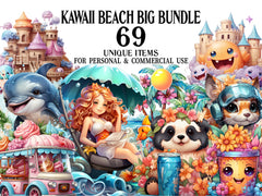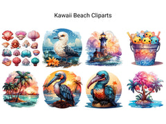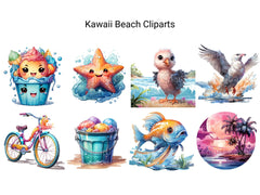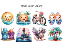 Immerse yourself in the sunny joy of Kawaii Beach clip art. These digital illustrations capture the cheerful essence of beach life with cute characters, vibrant beach scenes, and fun summer elements, perfect for adding a sense of relaxation and fun to your projects, whether for vacation-themed designs, scrapbooking, or beach party invitations.