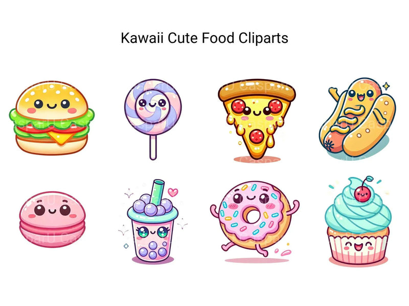 Adore your food with this Kawaii Cute Food Clipart set, featuring adorable designs, ideal for fun and cute projects.