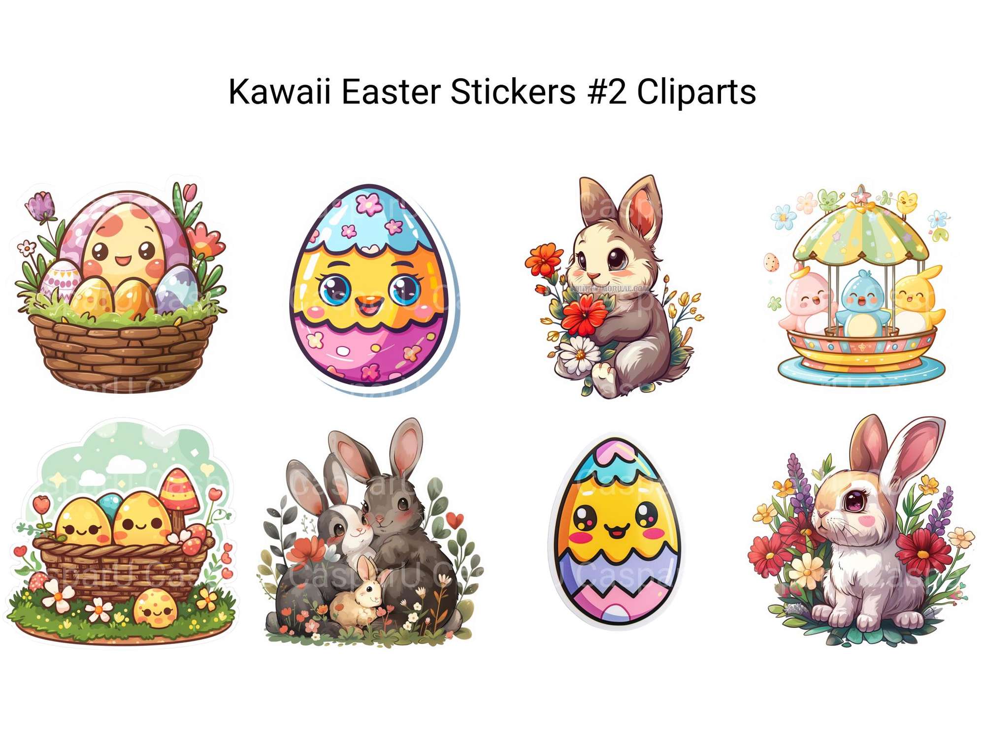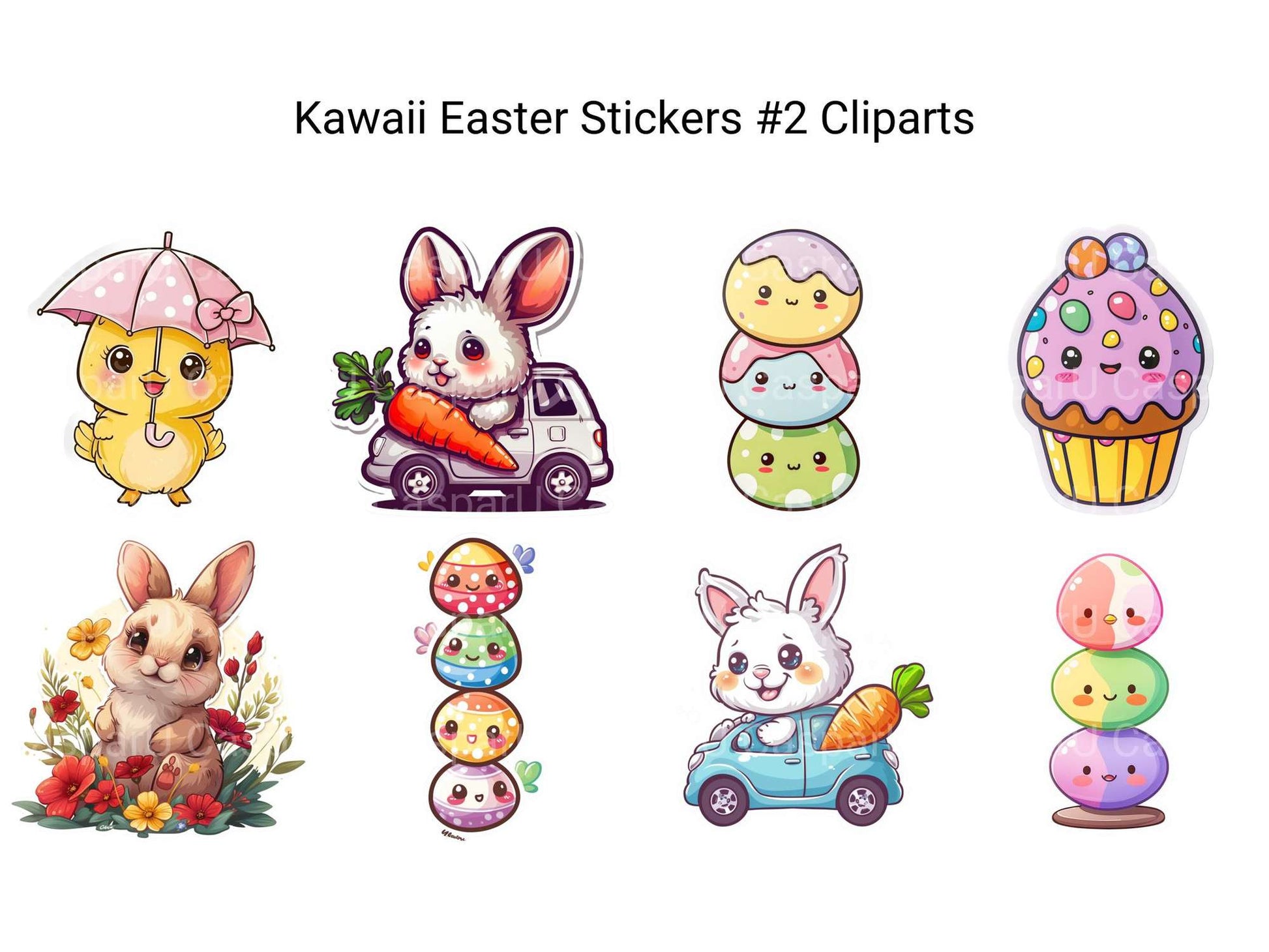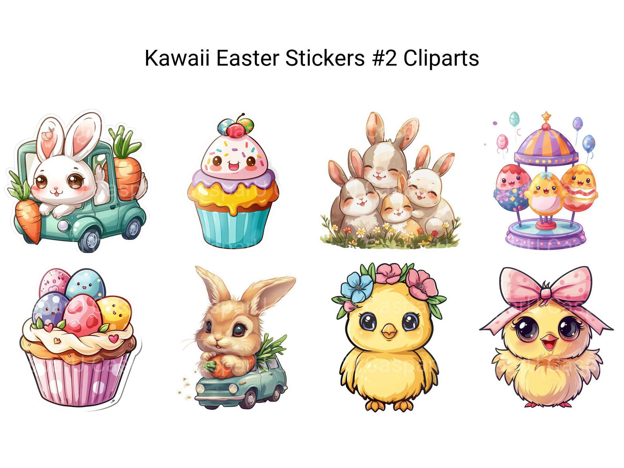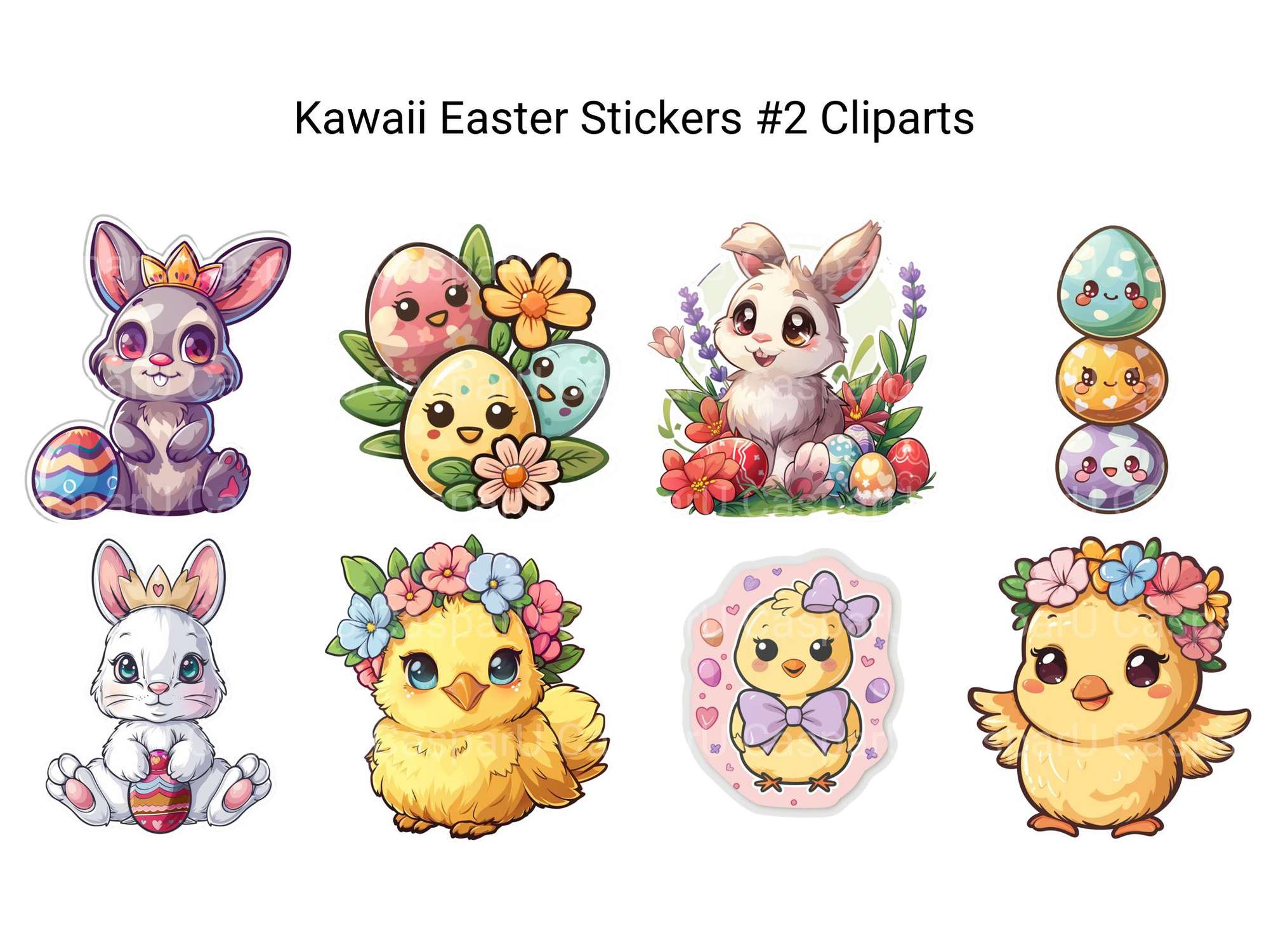 Brighten your spring with this Kawaii Easter Stickers Clipart set, offering more cute designs, ideal for playful Easter crafts.