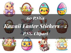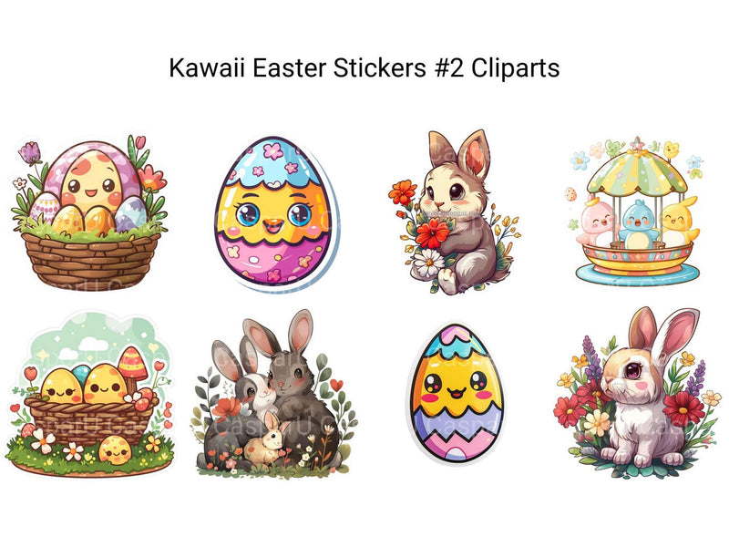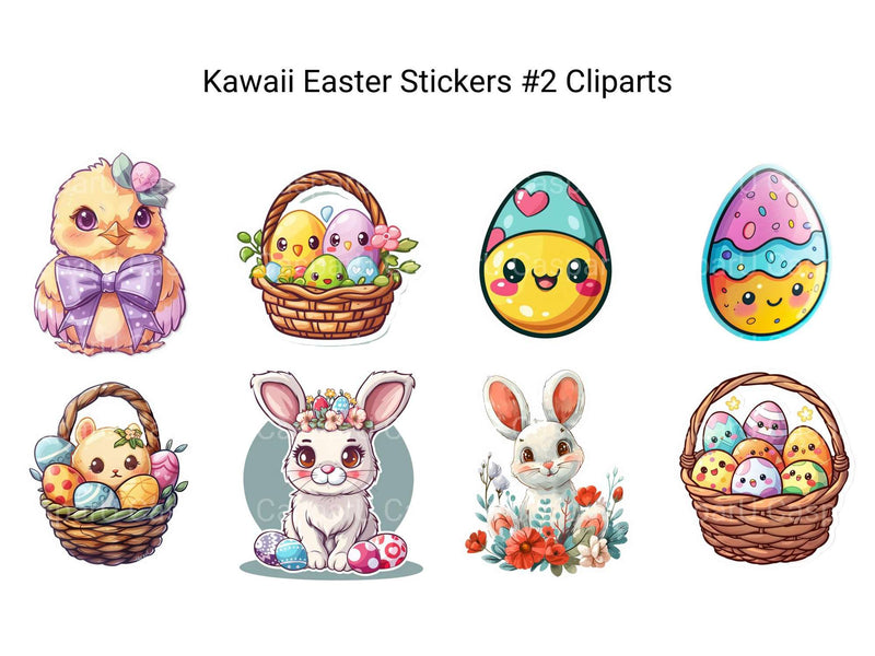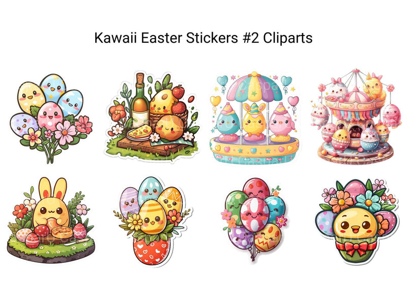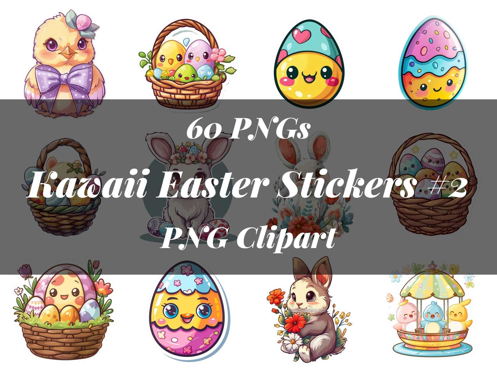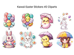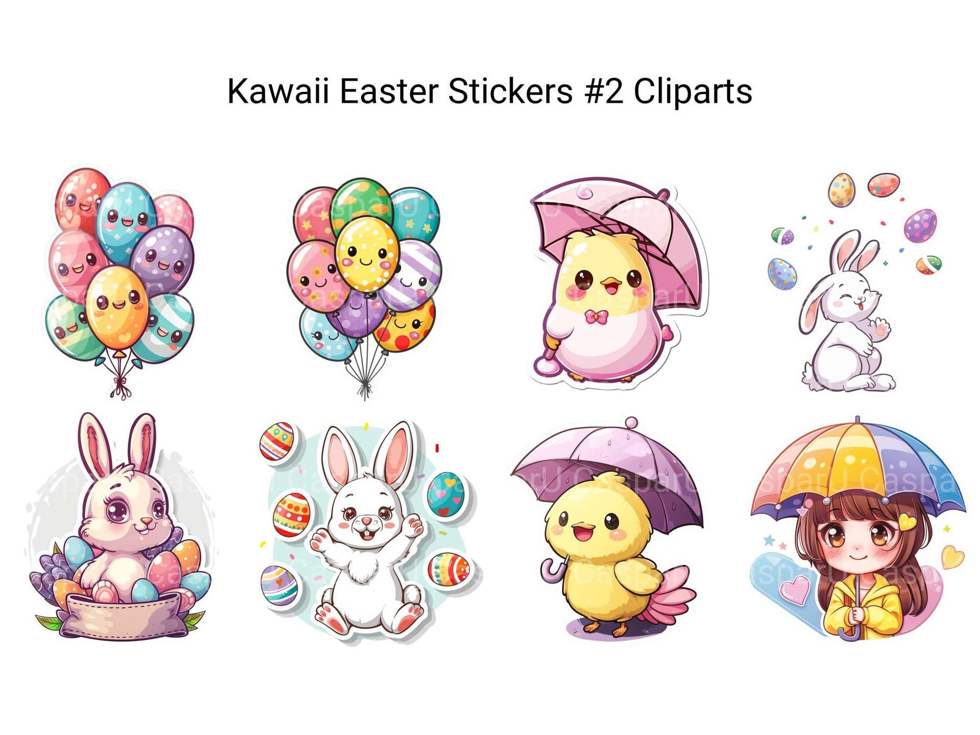 Brighten your spring with this Kawaii Easter Stickers Clipart set, offering more cute designs, ideal for playful Easter crafts.