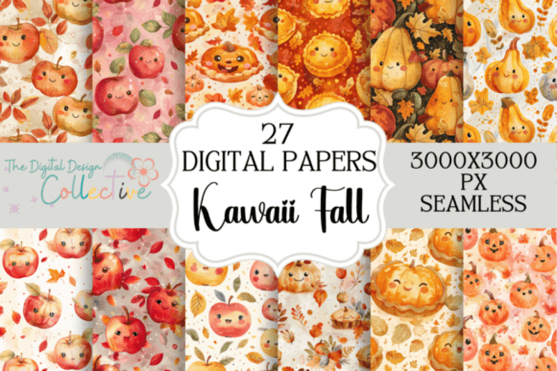 Enhance your creative projects with our Adorable Kawaii Fall Autumn Digital Papers. Featuring charming autumn-themed designs, these digital papers are perfect for scrapbooking, card making, and seasonal crafts. Capture the essence of fall with cute kawaii illustrations that bring warmth and whimsy to any project.