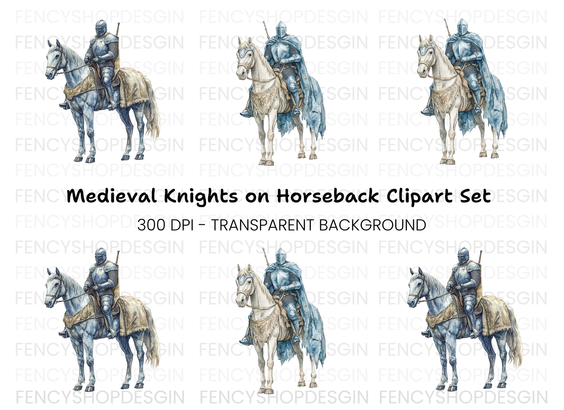 Unleash medieval charm with our Knights on Horseback Clipart Bundle, featuring majestic knights and their noble steeds, perfect for historical projects, educational materials, and creative crafts.