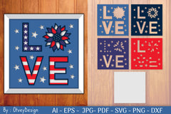 Love Sunflower USA Shadow Box Layered Papercut SVG Bundle