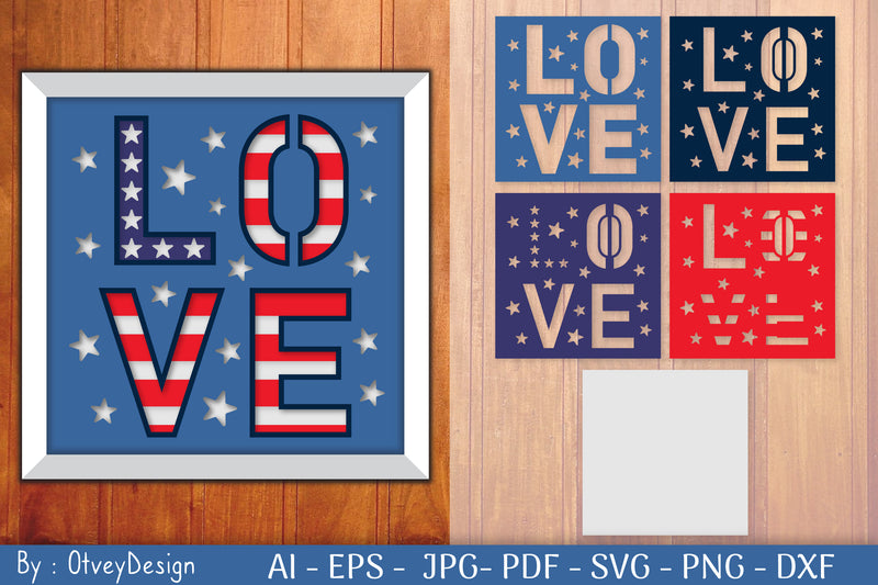 Love USA Shadow Box Layered Papercut SVG Bundle