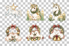 Transform your creations with these charming unicorn illustrations, ideal for Christmas cards, gift tags, and seasonal decorations.