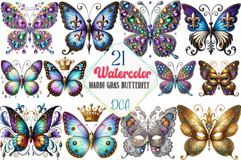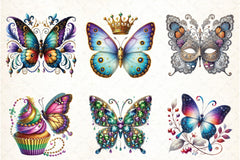 Mardi Gras Butterfly Clipart Bundle