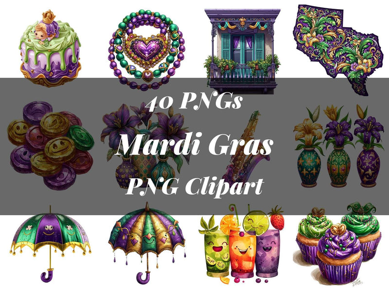 Party on with this Mardi Gras Bonus Clipart pack, adding festive designs with backgrounds, perfect for vibrant celebrations.