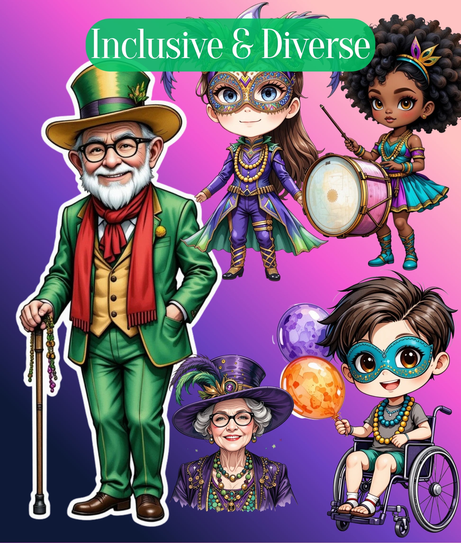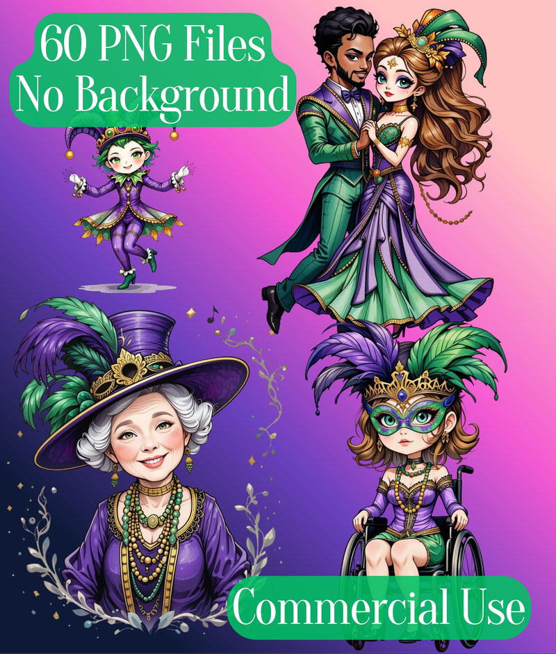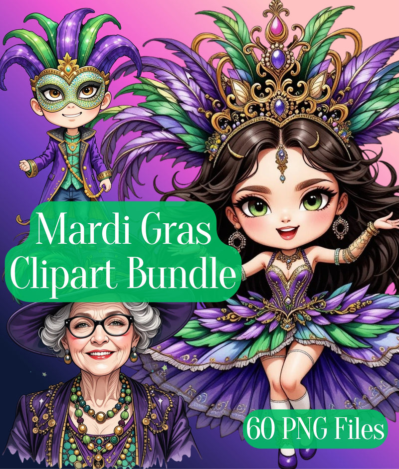Celebrate in style with our Mardi Gras Clipart Bundle, featuring vibrant and festive designs perfect for party invitations, decorations, and crafts. Unleash your creativity with colorful masks, beads, and iconic symbols that capture the spirit of Mardi Gras. Ideal for digital projects, scrapbooking, and more, this bundle is your go-to resource for all things Mardi Gras. Download now and let the good times roll!