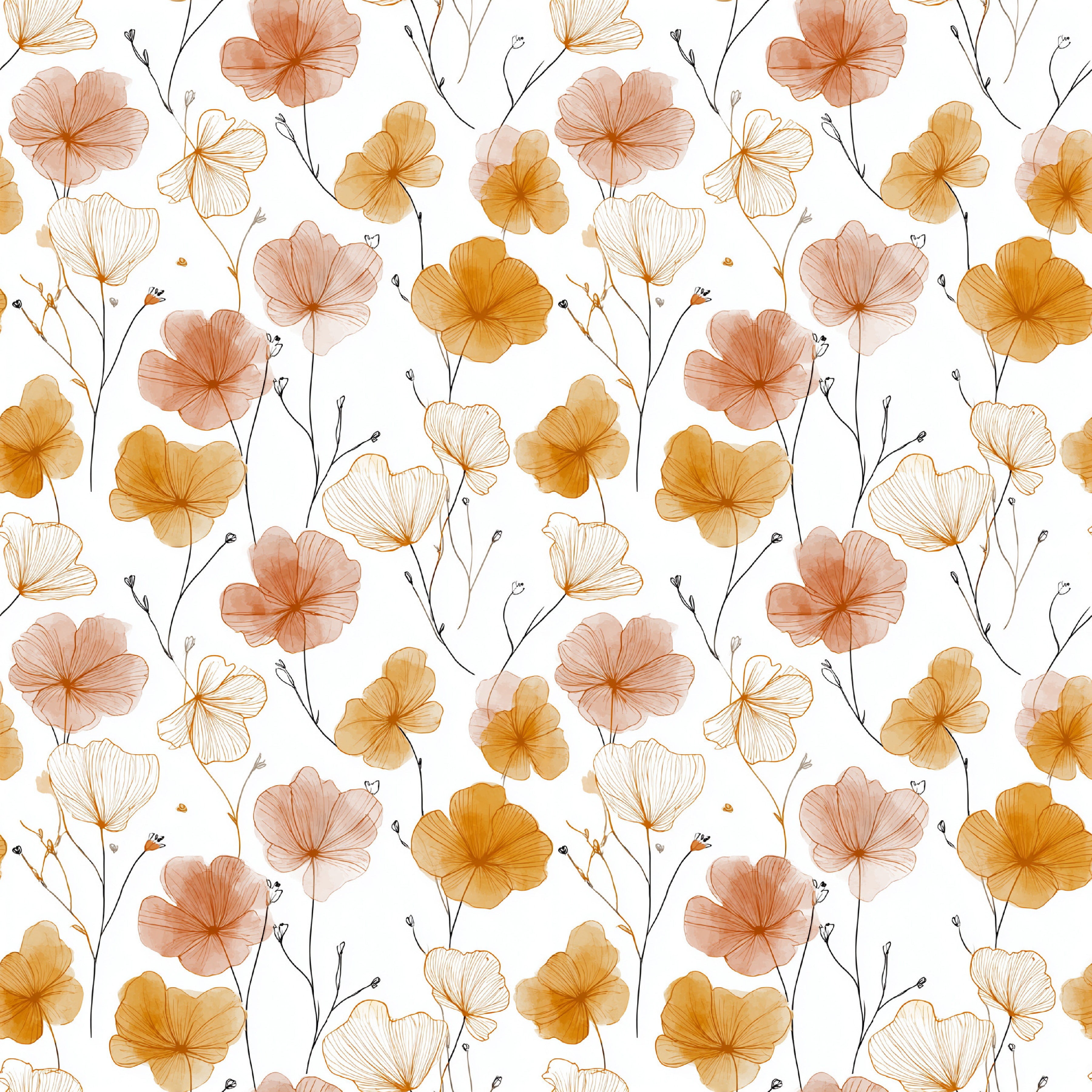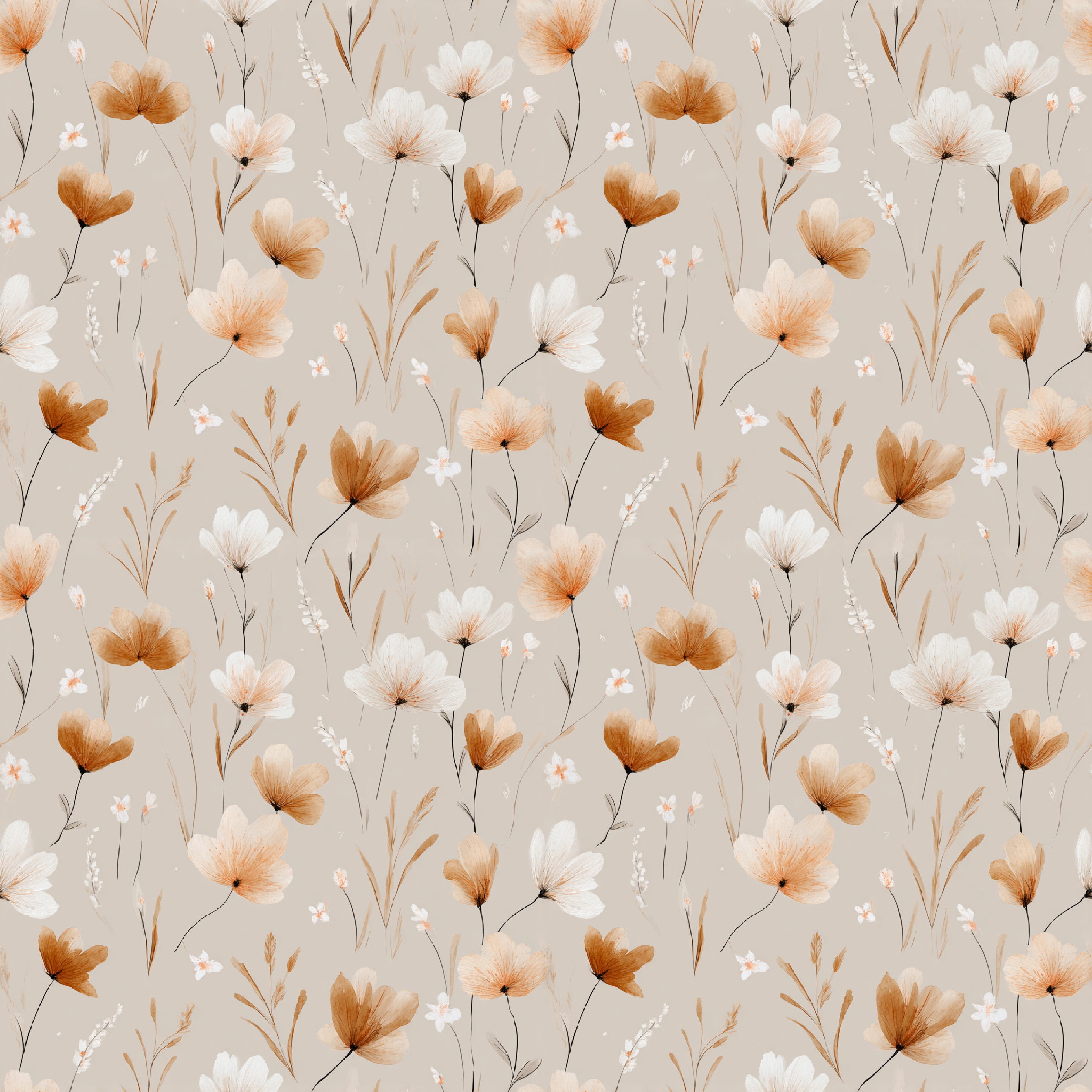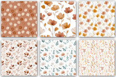 Minimal Boho Floral Seamless Patterns Digital Paper
