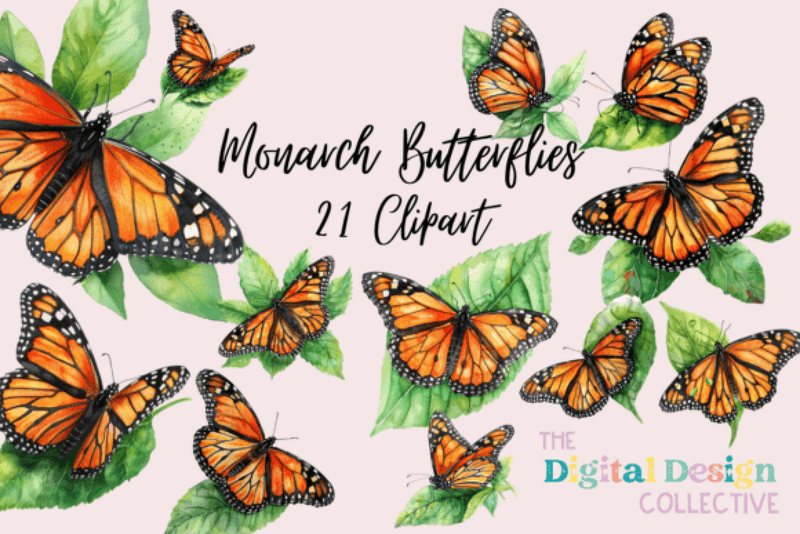 Transform your projects with the Monarch Butterfly Clipart Bundle, featuring vibrant and detailed butterfly designs, perfect for nature-themed crafts and digital creations.