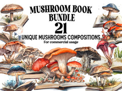 Explore the world of fungi with our Mushroom Books clip art. Featuring detailed illustrations of mushrooms accompanied by informative text, this collection is ideal for educational materials, nature guides, and botanical-themed projects.