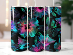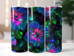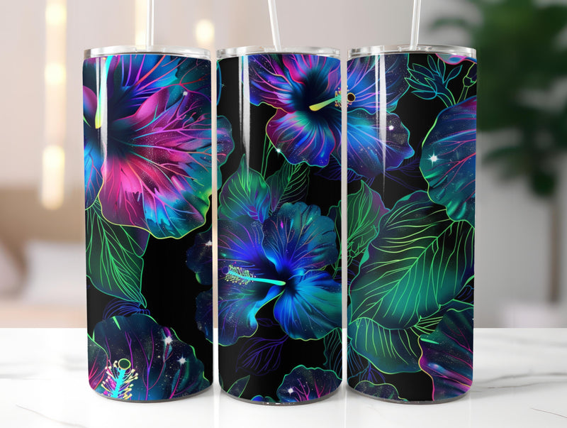 Neon Glowing Hibiscus Tumbler Wrap