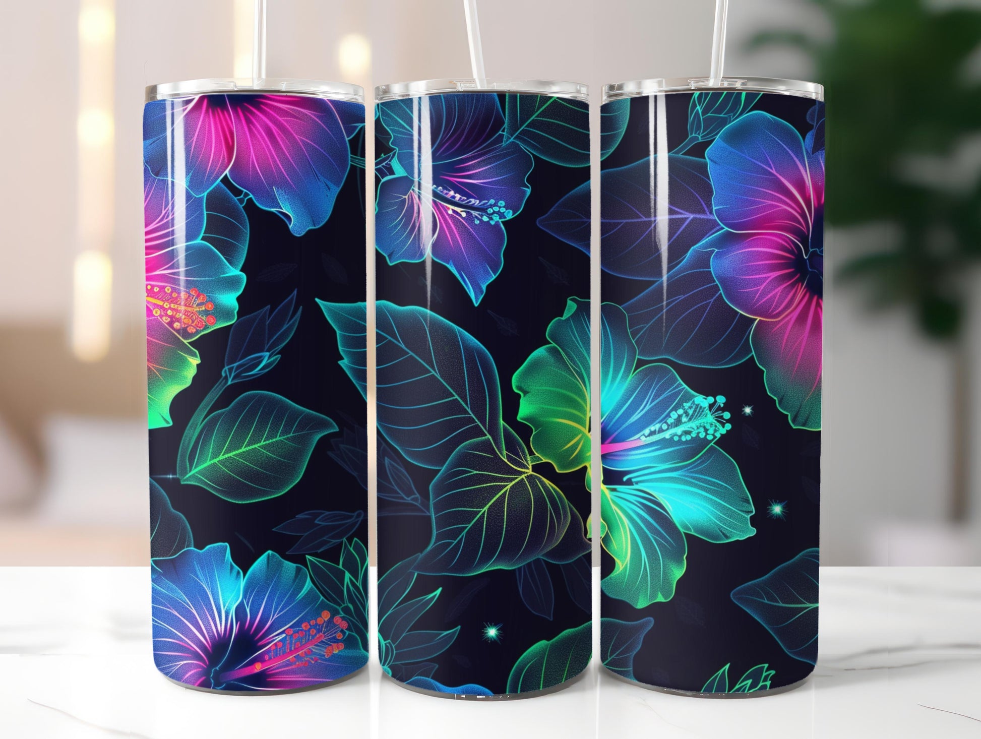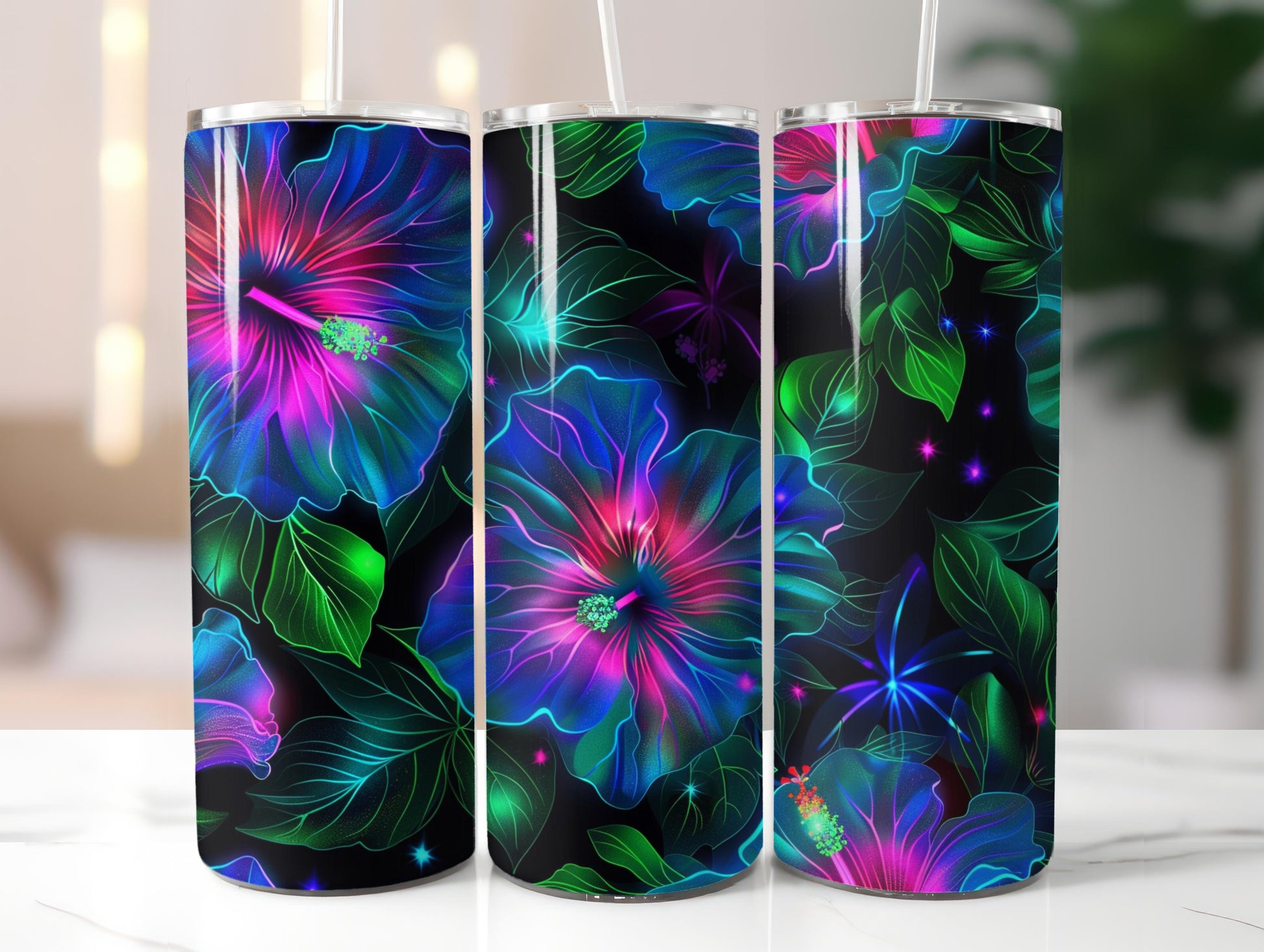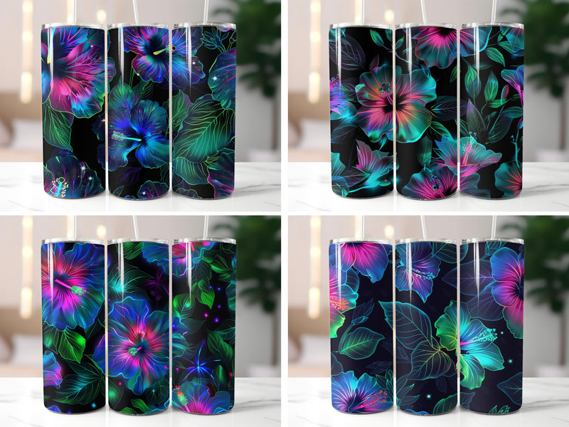 Bloom bold with this Neon Glowing Hibiscus set, featuring vibrant floral designs, perfect for striking tumblers.