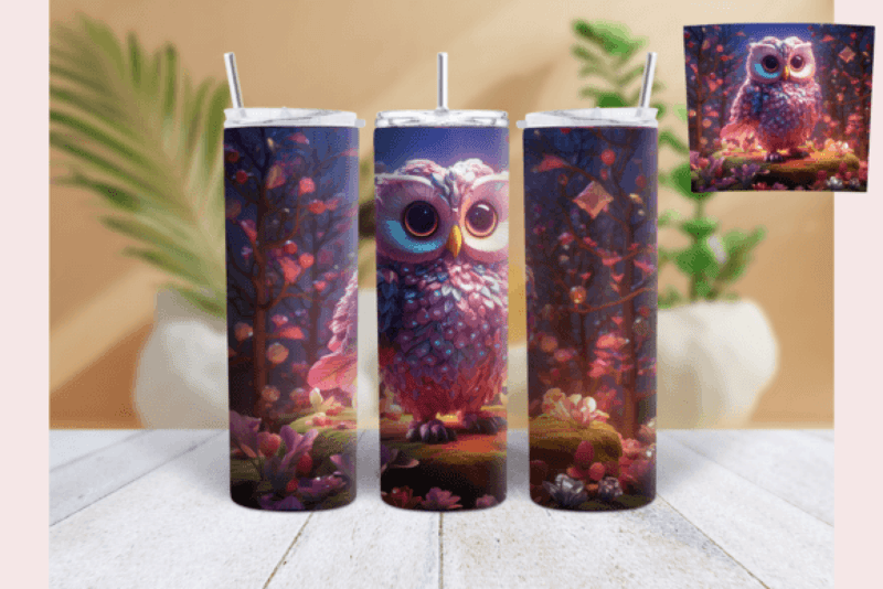 Illuminate your drinkware with the Vibrant Neon Owl Tumbler Wrap, showcasing striking neon owl designs, perfect for adding a touch of whimsy to your daily hydration routine.